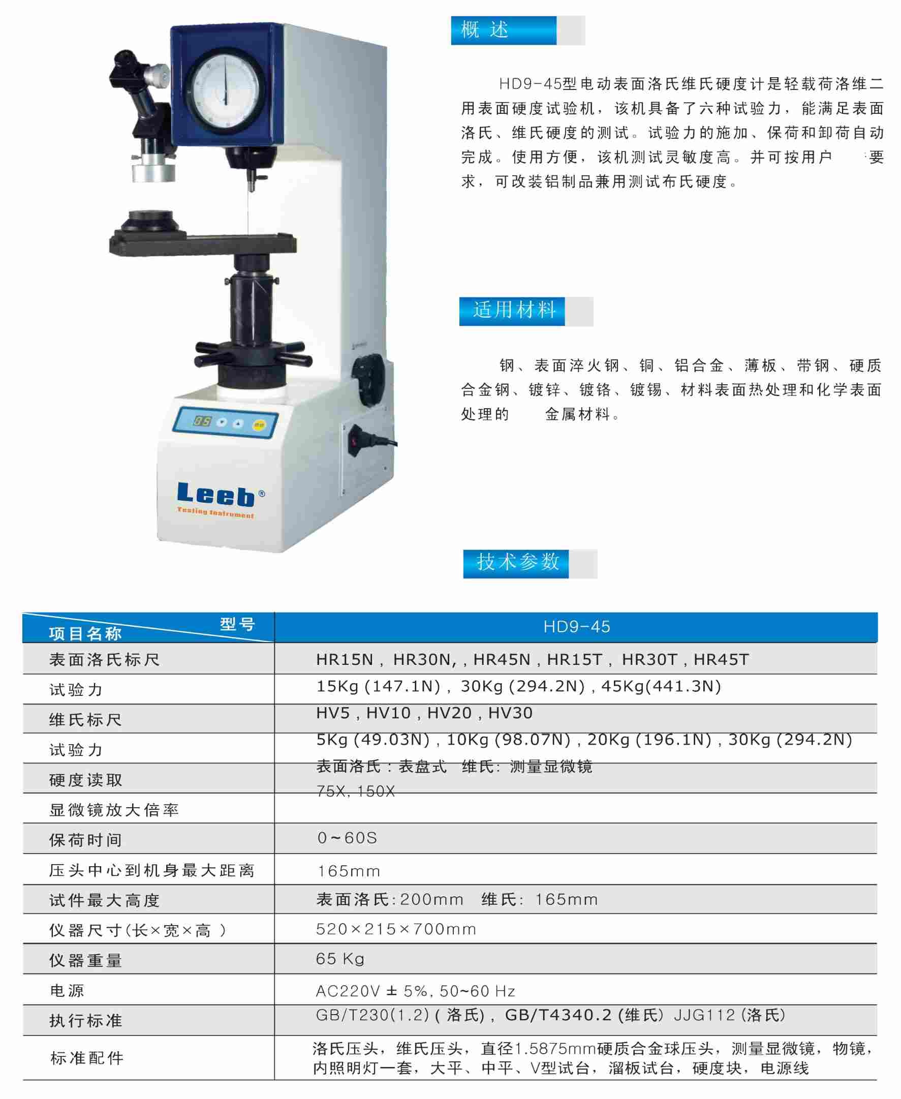 HD9-45型電動(dòng)表面洛氏維氏硬度計(jì)是輕載荷洛維二用表面硬度試驗(yàn)機(jī)。