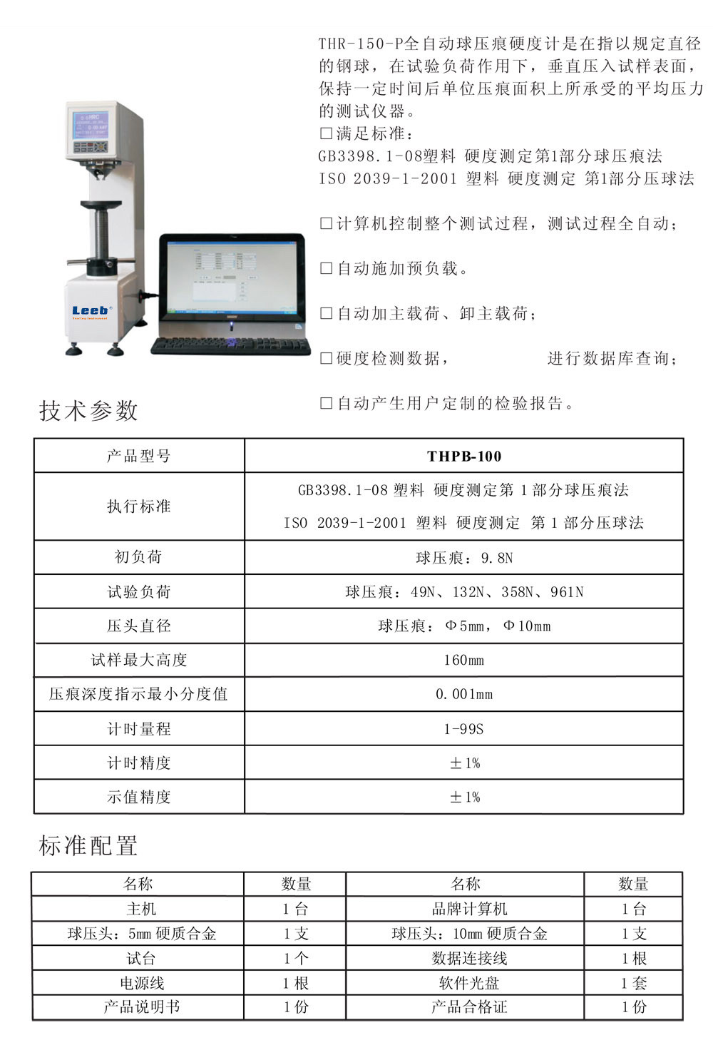 全自動(dòng)球壓痕硬度計(jì)THPB-100