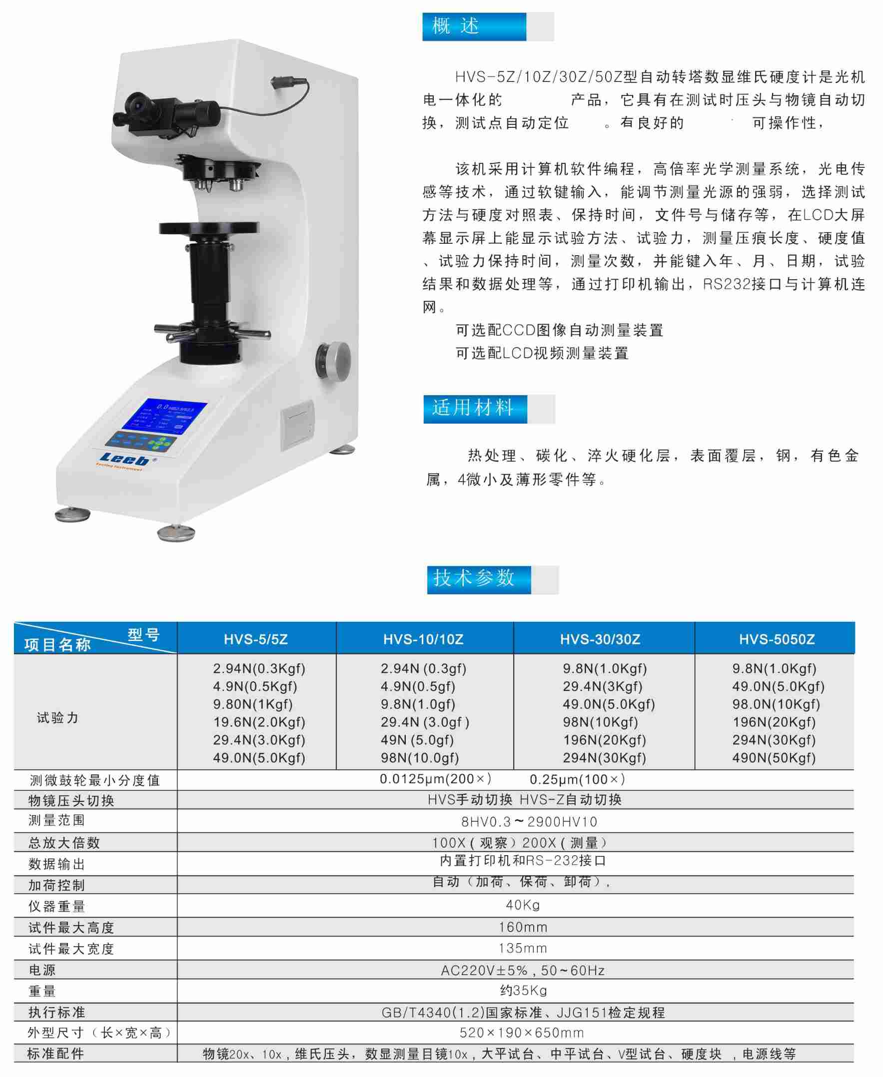 數(shù)顯維氏硬度計 HVS-5/10/30/50/5Z/10Z/30Z/50Z