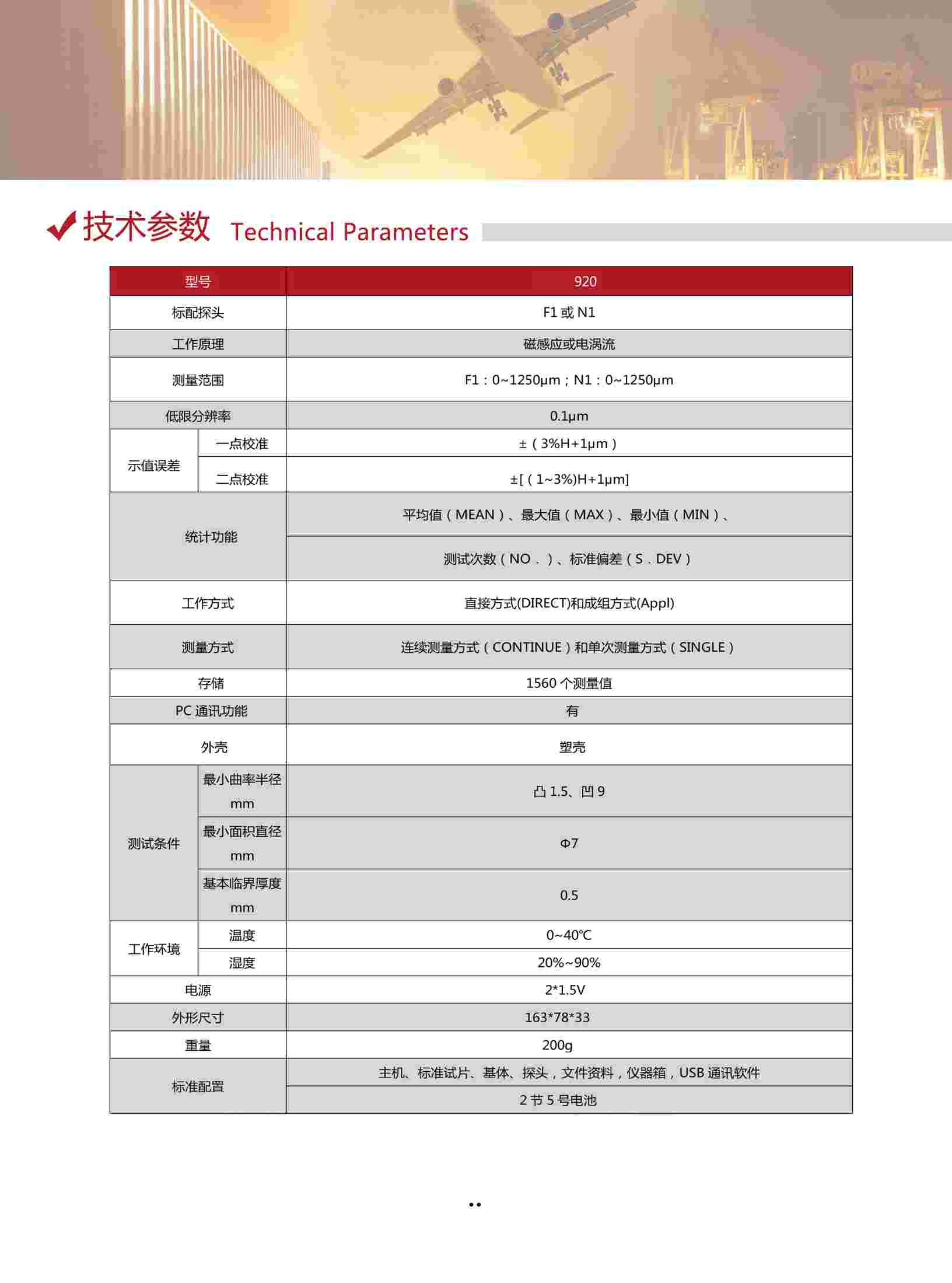 探頭決定(標(biāo)配探頭F1或N1 0~1250μm) |