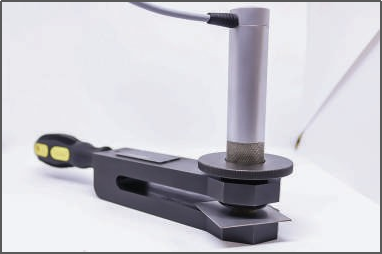 該儀器采用超聲接觸阻抗法(UCI),符合ASTM A1038標(biāo)準(zhǔn),是一種非直接測量壓痕的動態(tài)壓入法。端部鑲有特定壓頭(如金剛石壓頭)的振動桿受到激勵(lì)做縱向超聲振動,用一定的試驗(yàn)力將壓頭壓入試驗(yàn)表面,振動桿的縱向振動將受到阻抗,諧振頻率發(fā)生變化,從而得出硬度值。這種硬度測量方法已經(jīng)在各國大范圍使用,并且已經(jīng)在工業(yè)領(lǐng)域使用了50多年。