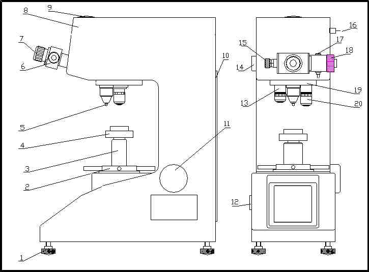 一體化鑄鋁機(jī)身,不變形,不位移,砝碼加載結(jié)構(gòu),性能穩(wěn)定,測(cè)量精度高,重復(fù)性好。硬度換算功能。物鏡與壓頭可自動(dòng)切換,定位精準(zhǔn)。7吋高靈敏度觸摸屏操作顯示。選配通訊協(xié)議后可以和電腦通訊,實(shí)現(xiàn)電腦自動(dòng)控制。菜單式結(jié)構(gòu),實(shí)驗(yàn)過程自動(dòng)化,操作簡(jiǎn)便。高清光學(xué)系統(tǒng)和物鏡,光源亮度可以10級(jí)調(diào)節(jié)。測(cè)試結(jié)果和數(shù)據(jù)處理,USB數(shù)據(jù)一鍵導(dǎo)出EXCEL格式報(bào)告。對(duì)角線長(zhǎng)度D1和D2編碼器輸入,方便快捷,減少人為讀數(shù)誤差。顯示界面采用了菜單式結(jié)構(gòu),人機(jī)對(duì)話非常友好,易于操作,安裝調(diào)試簡(jiǎn)單。