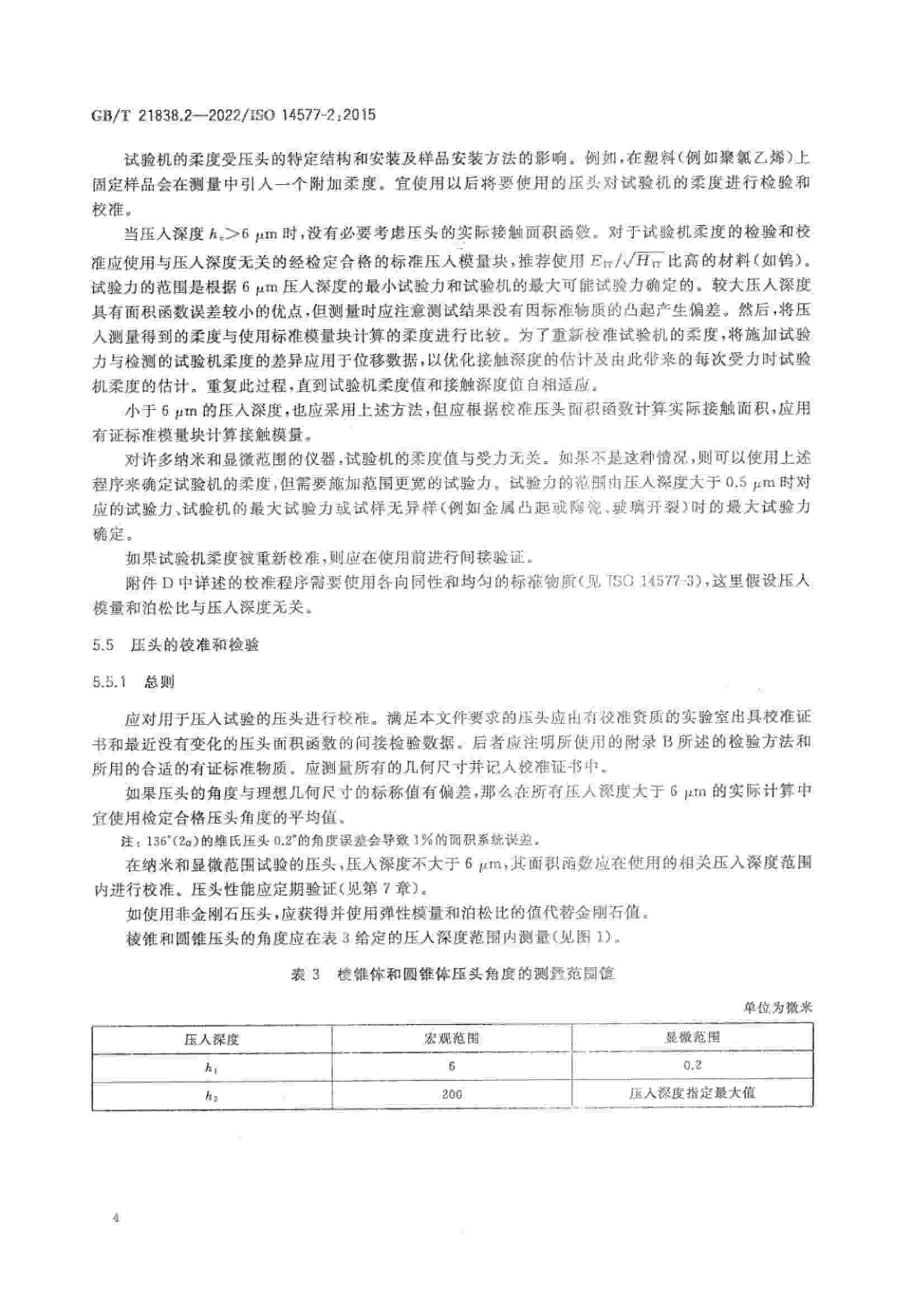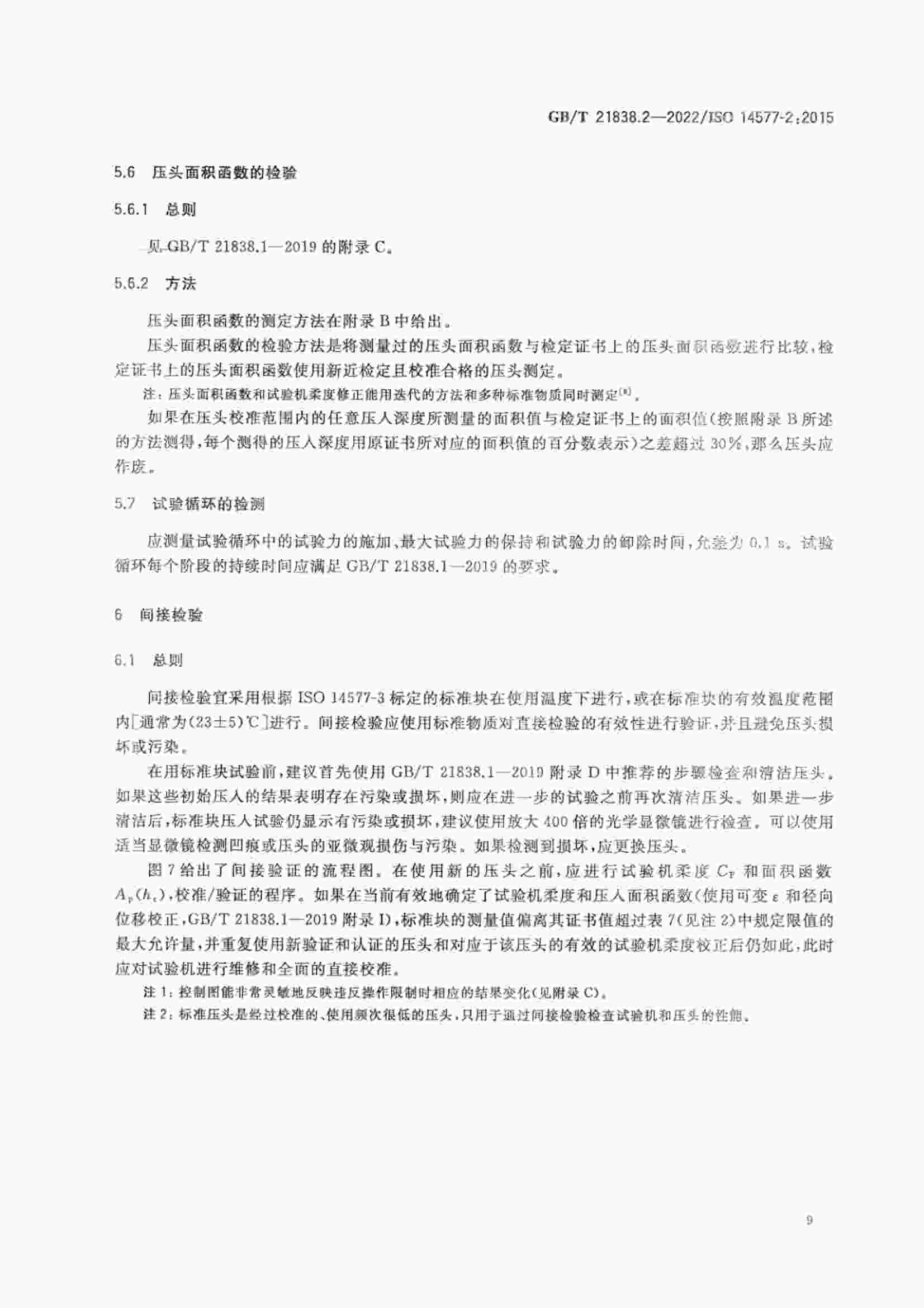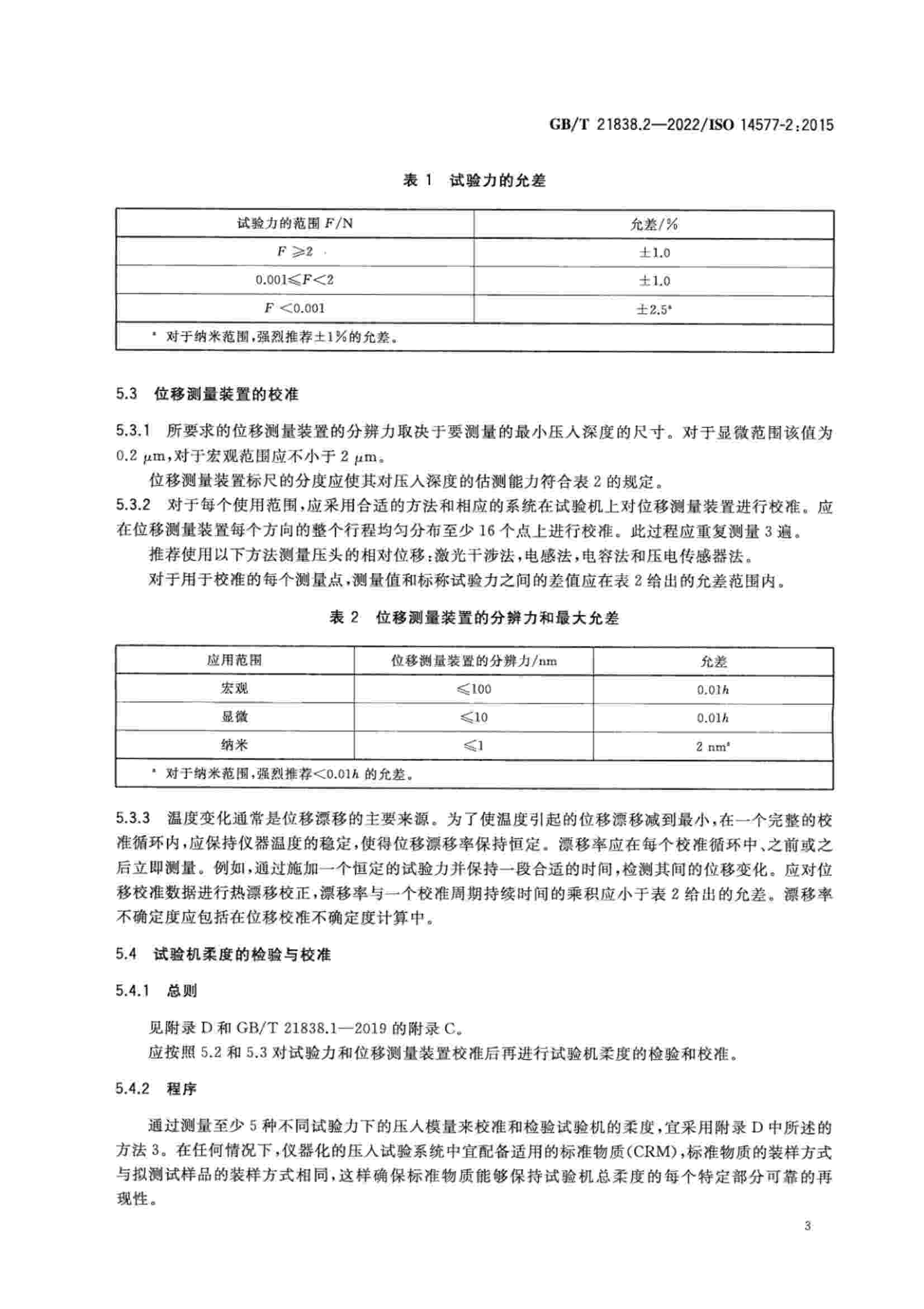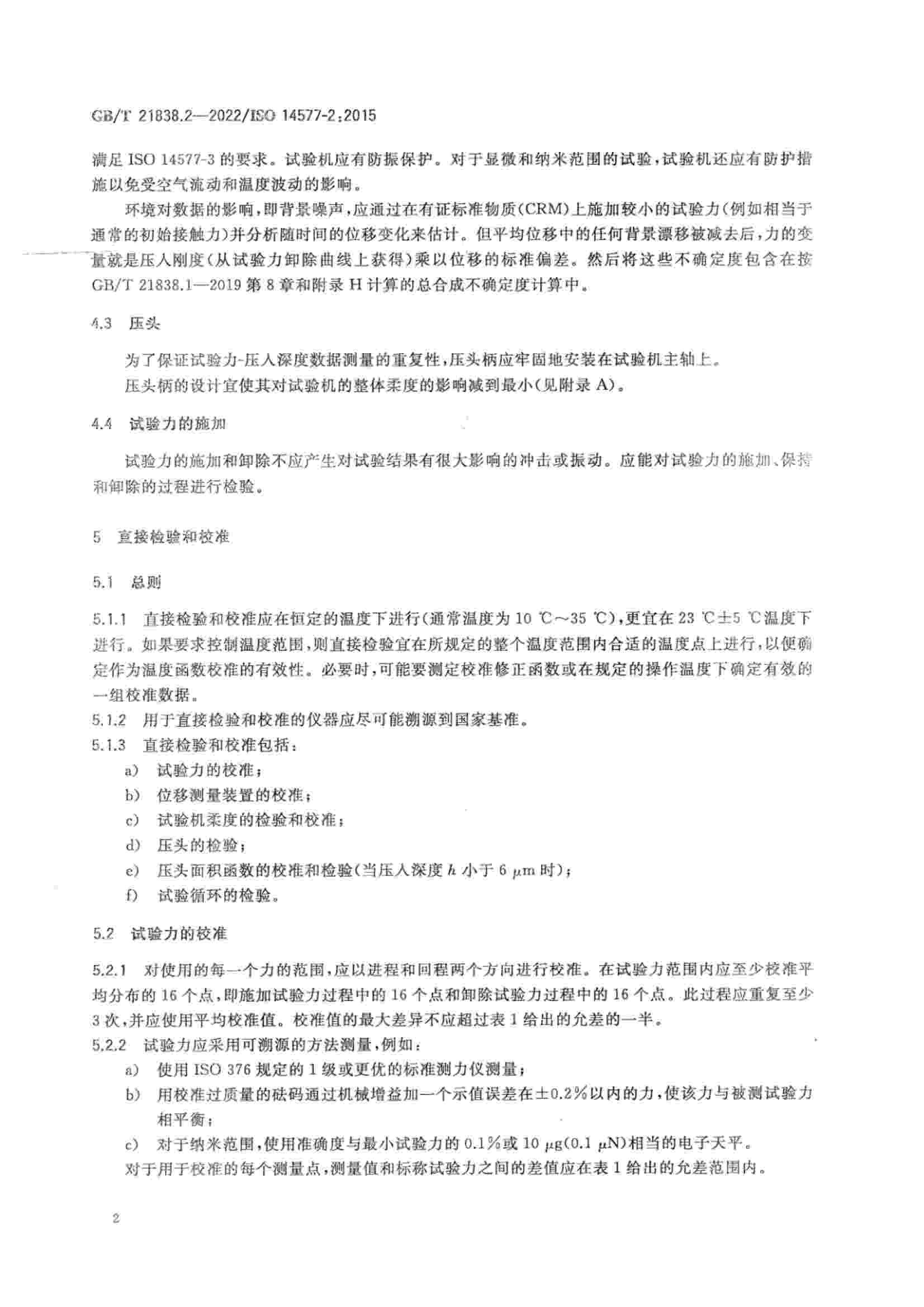 《GBT 21838.2-2022 金屬材料 硬度和材料參數(shù)的儀器化壓入試驗(yàn) 第2部分:試驗(yàn)機(jī)的檢驗(yàn)和校準(zhǔn)》