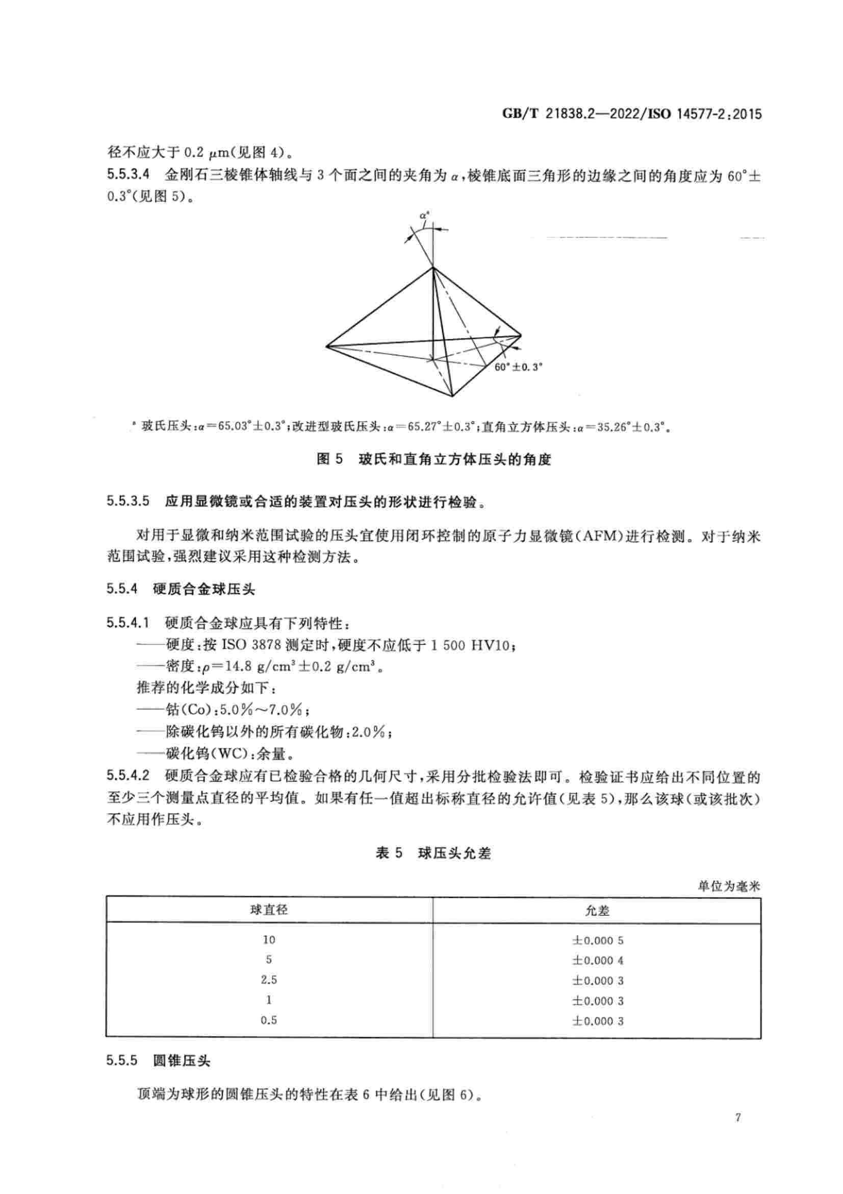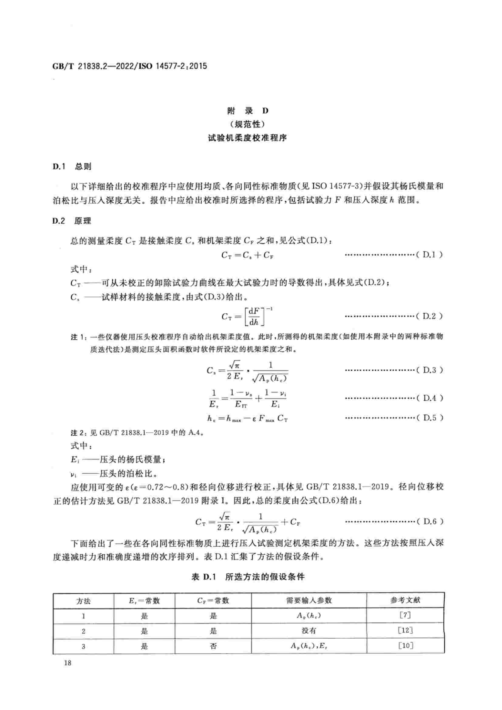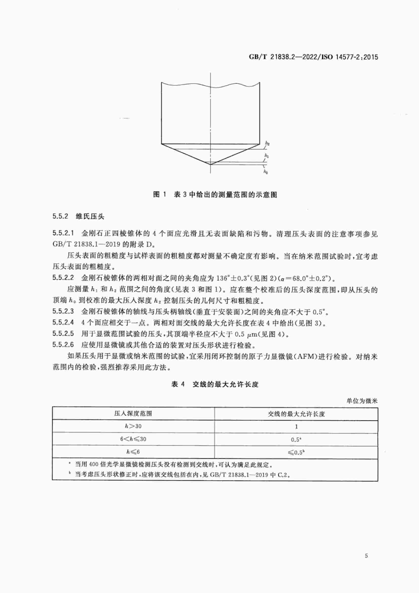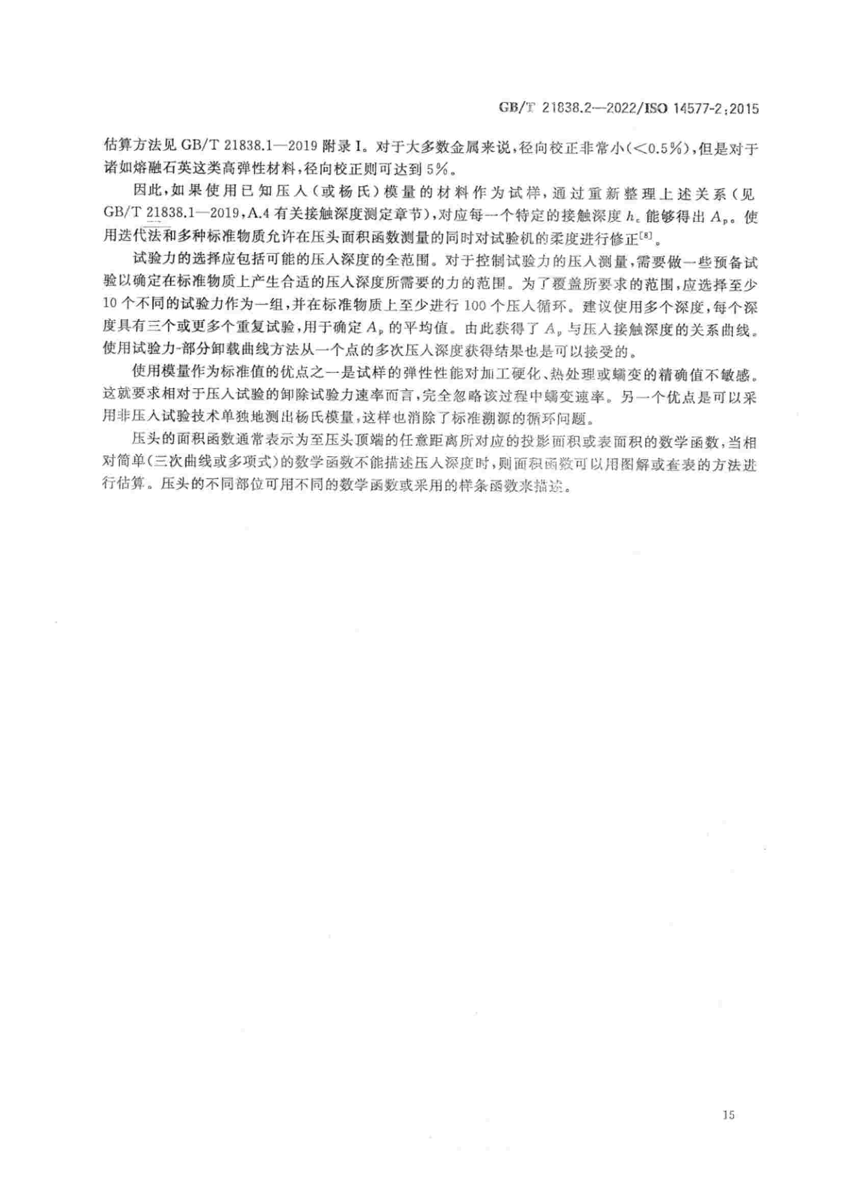 《GBT 21838.2-2022 金屬材料 硬度和材料參數(shù)的儀器化壓入試驗(yàn) 第2部分:試驗(yàn)機(jī)的檢驗(yàn)和校準(zhǔn)》