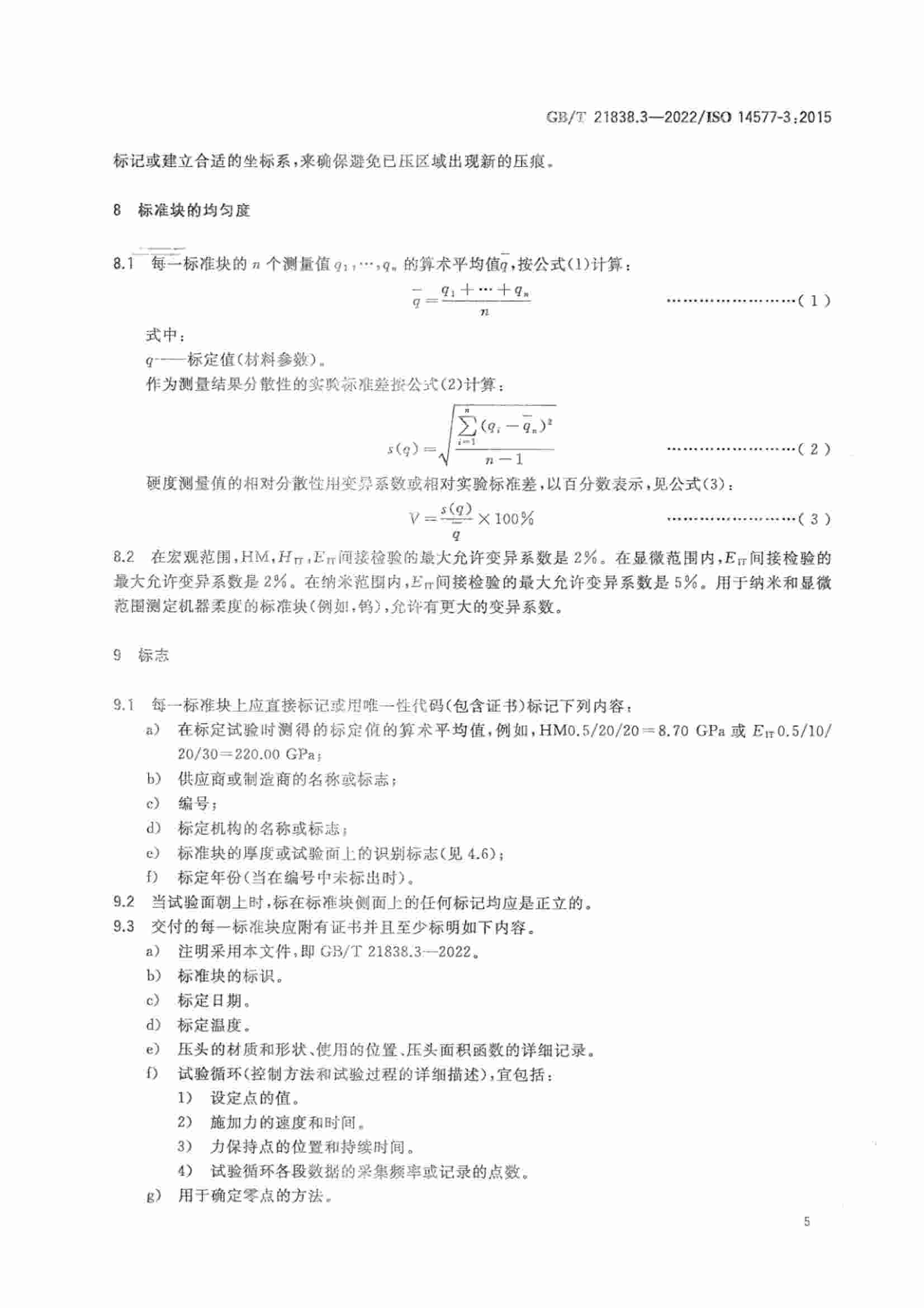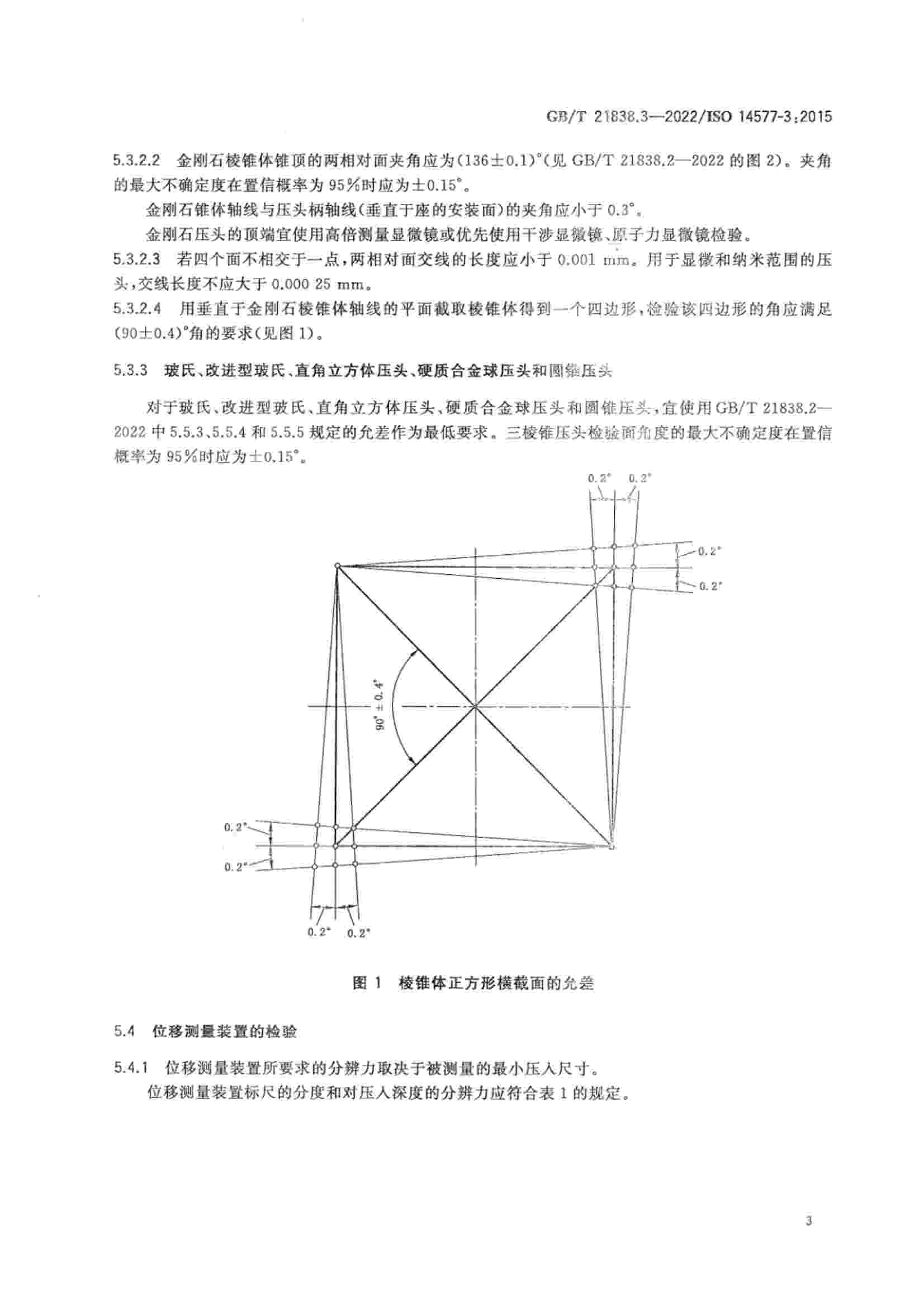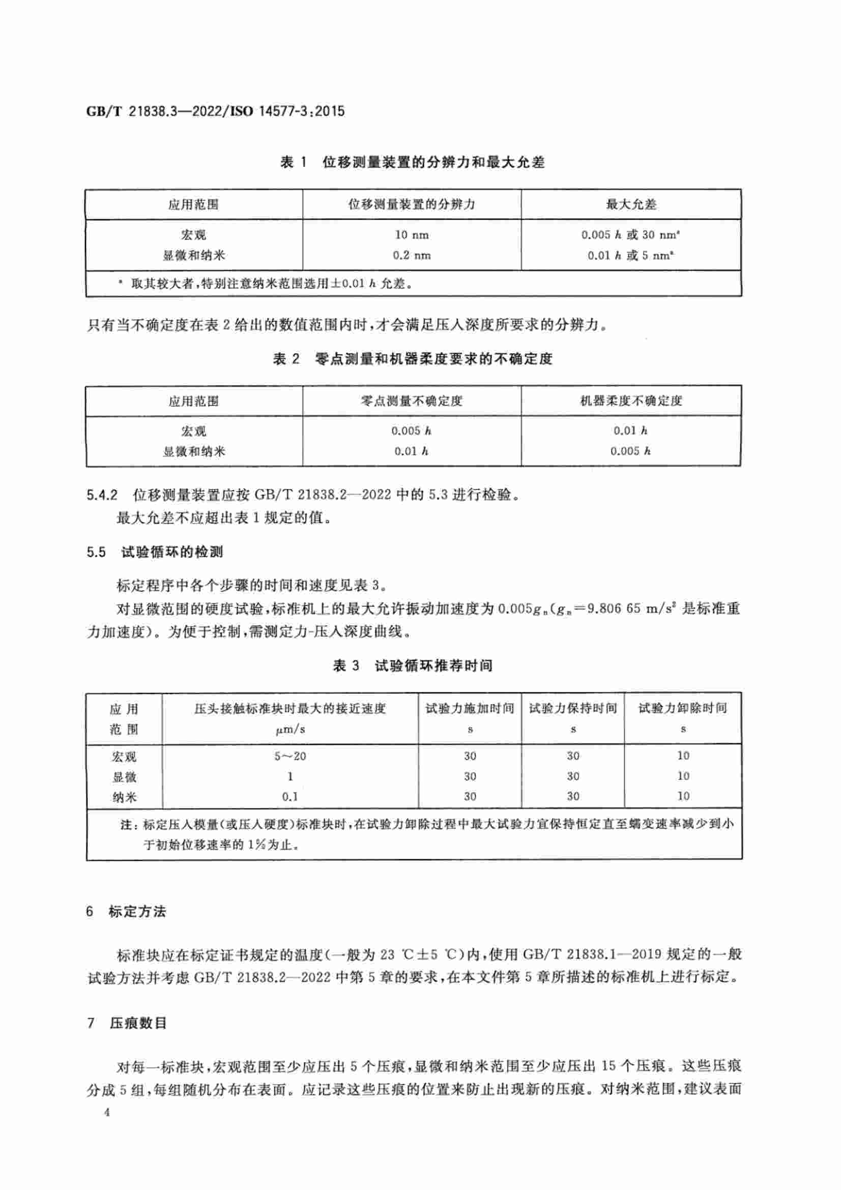 《GBT 21838.3-2022 金屬材料 硬度和材料參數(shù)的儀器化壓入試驗(yàn) 第3部分:標(biāo)準(zhǔn)塊的標(biāo)定》