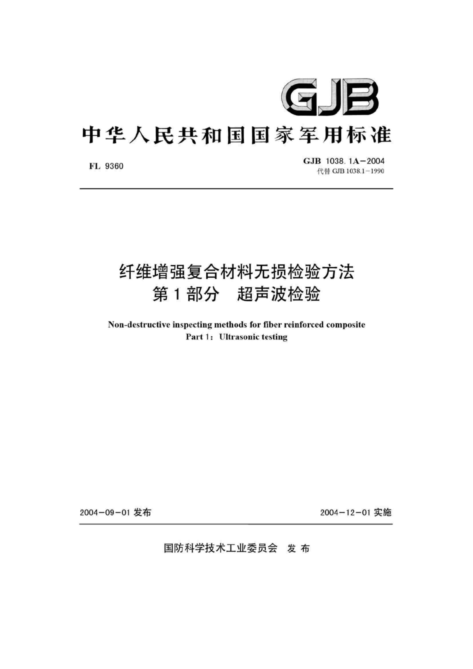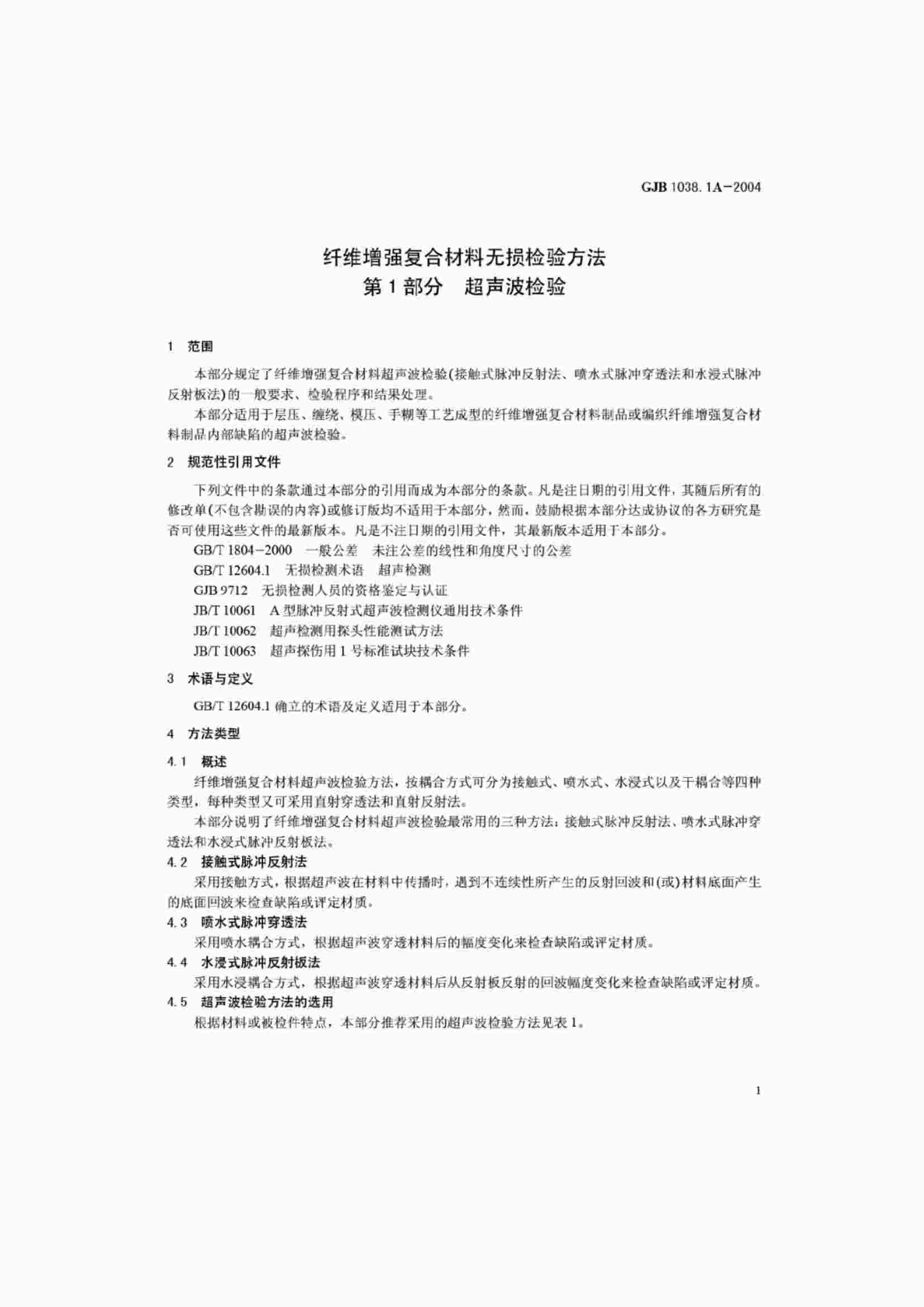 GJB 1038.1A-2004 纖維增強(qiáng)復(fù)合材料無(wú)損檢驗(yàn)方法 第1部分 超聲波檢驗(yàn)