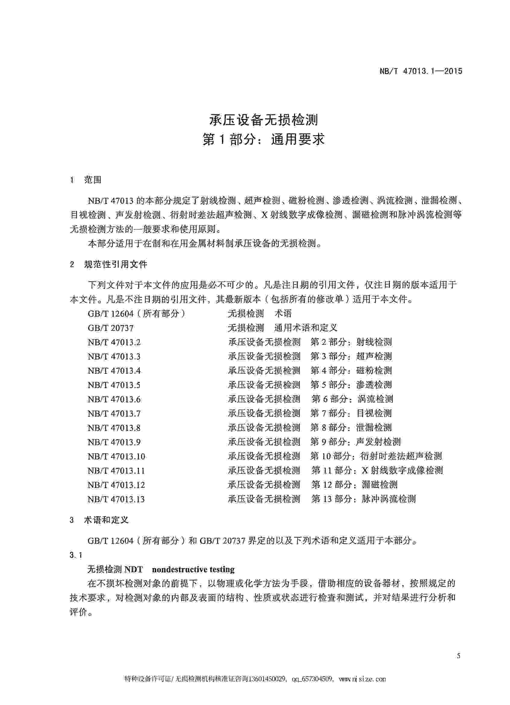 NB/T47013.1-2015 承壓設(shè)備無損檢測(cè) 第1部分:通用檢測(cè)