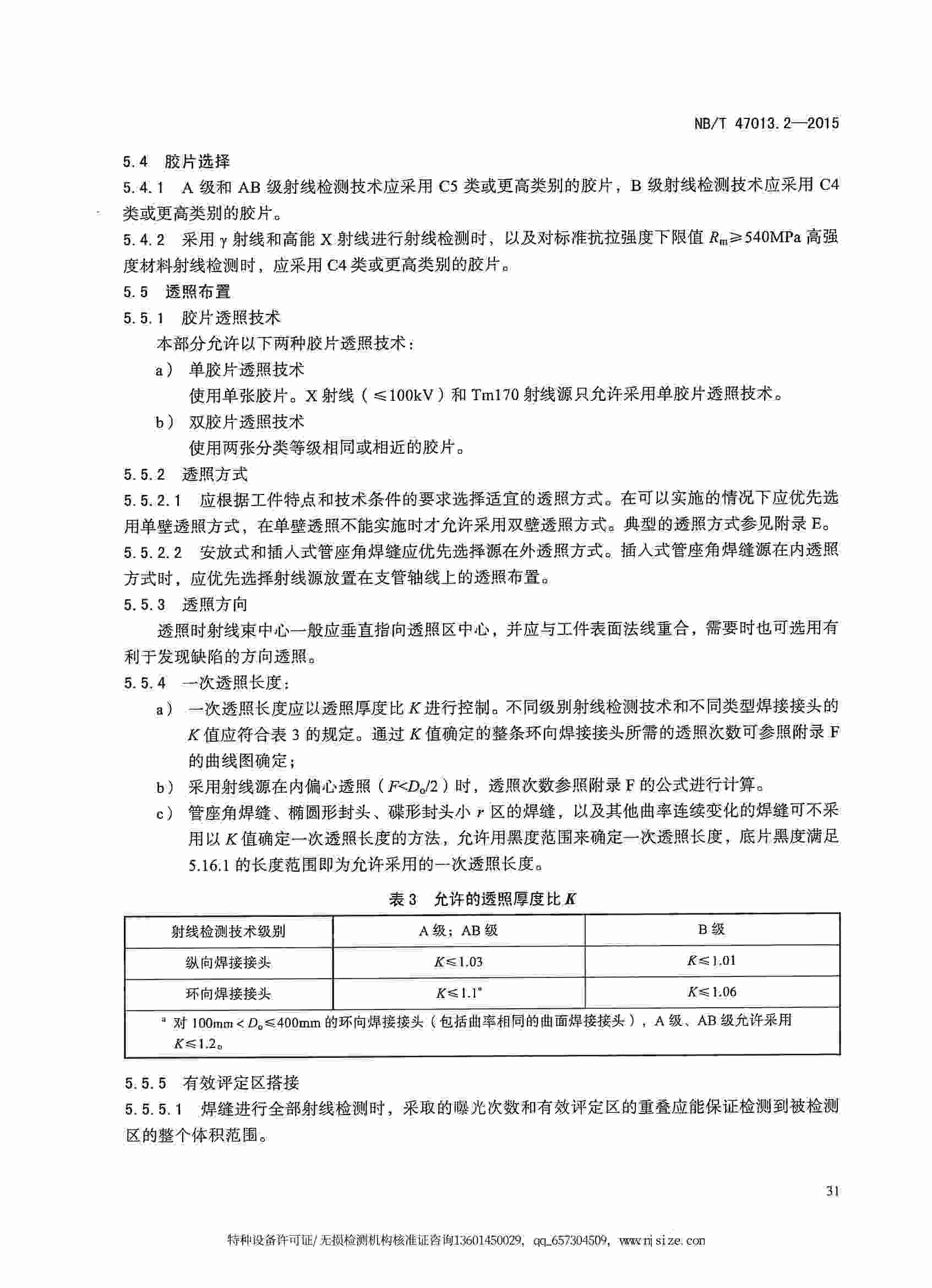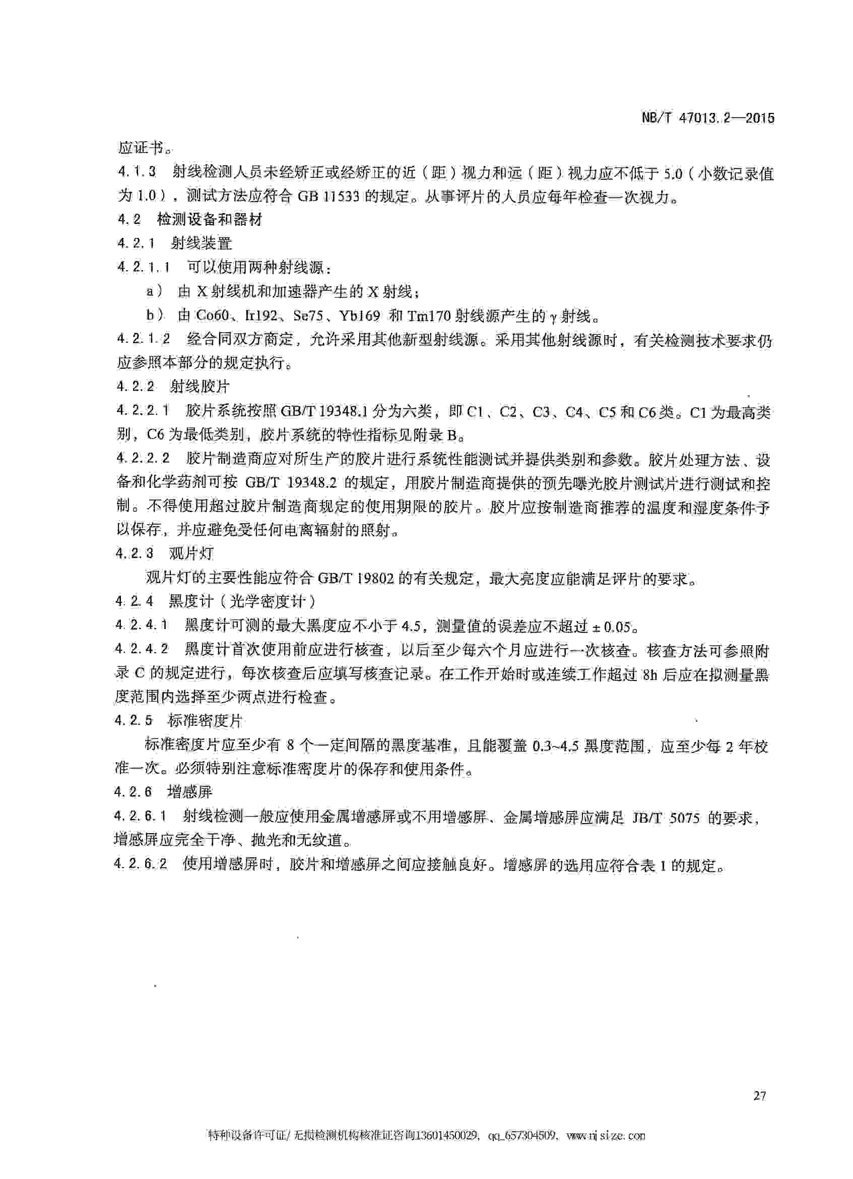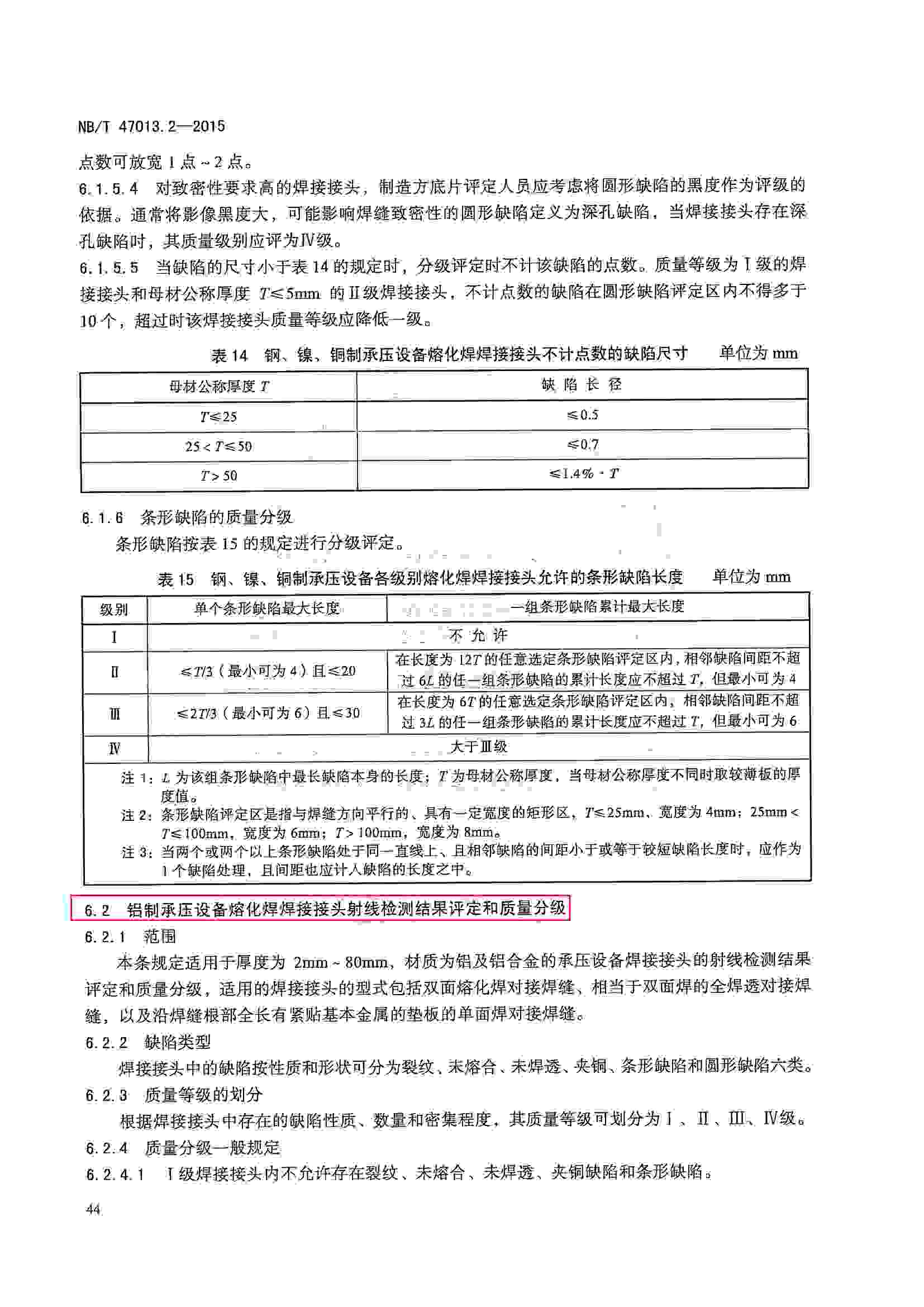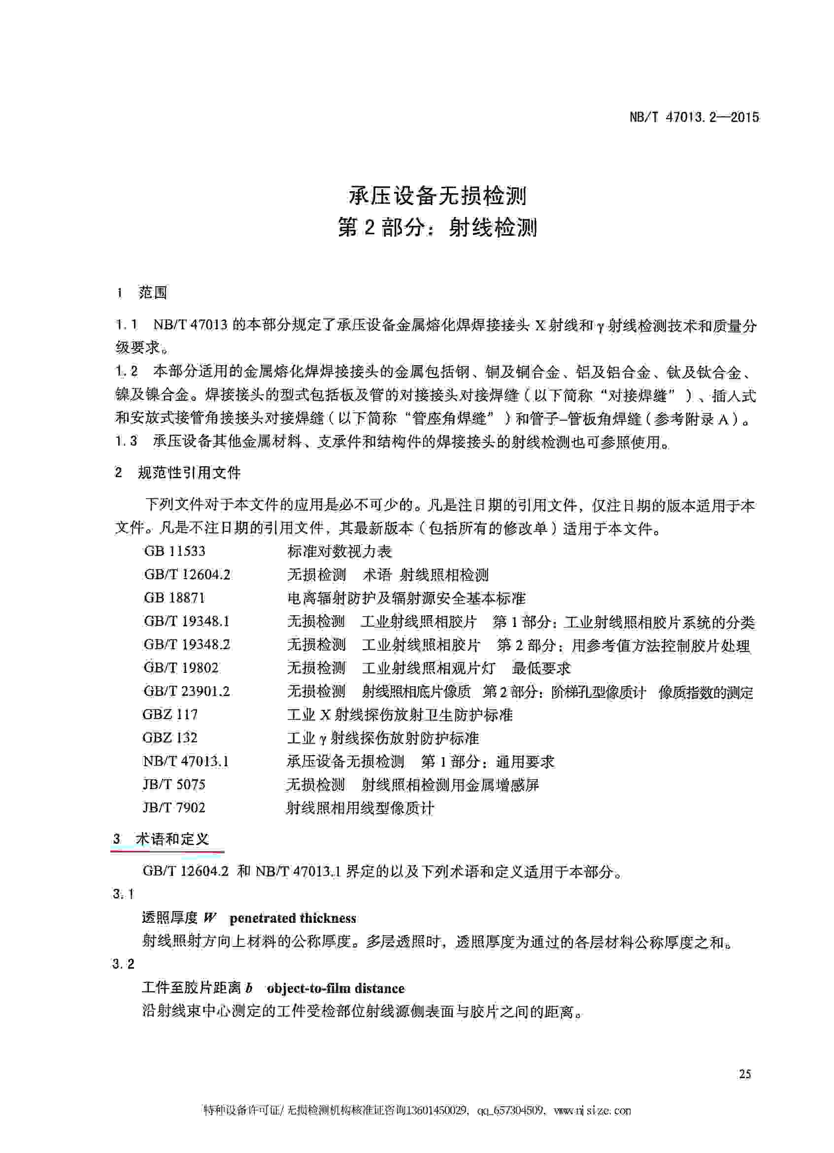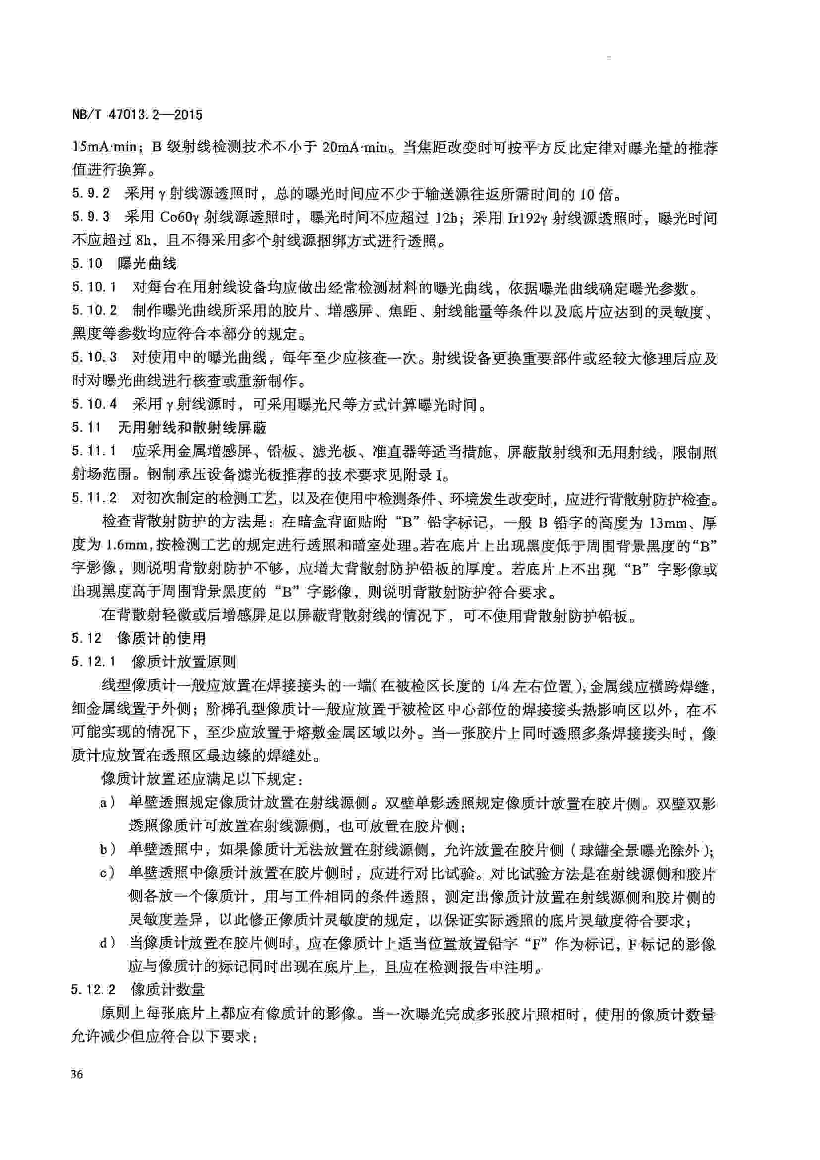 NB/T47013-2015 承壓設備無損檢測 第2部分:射線檢測