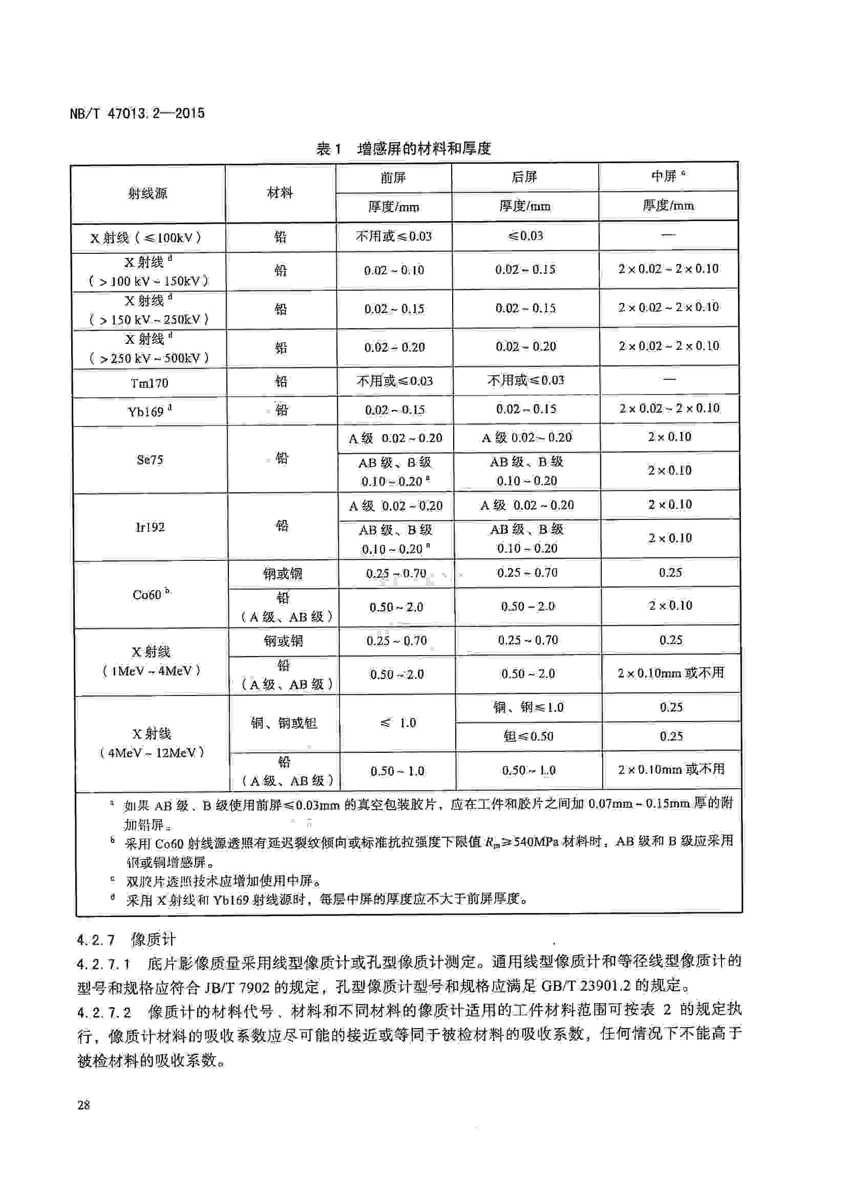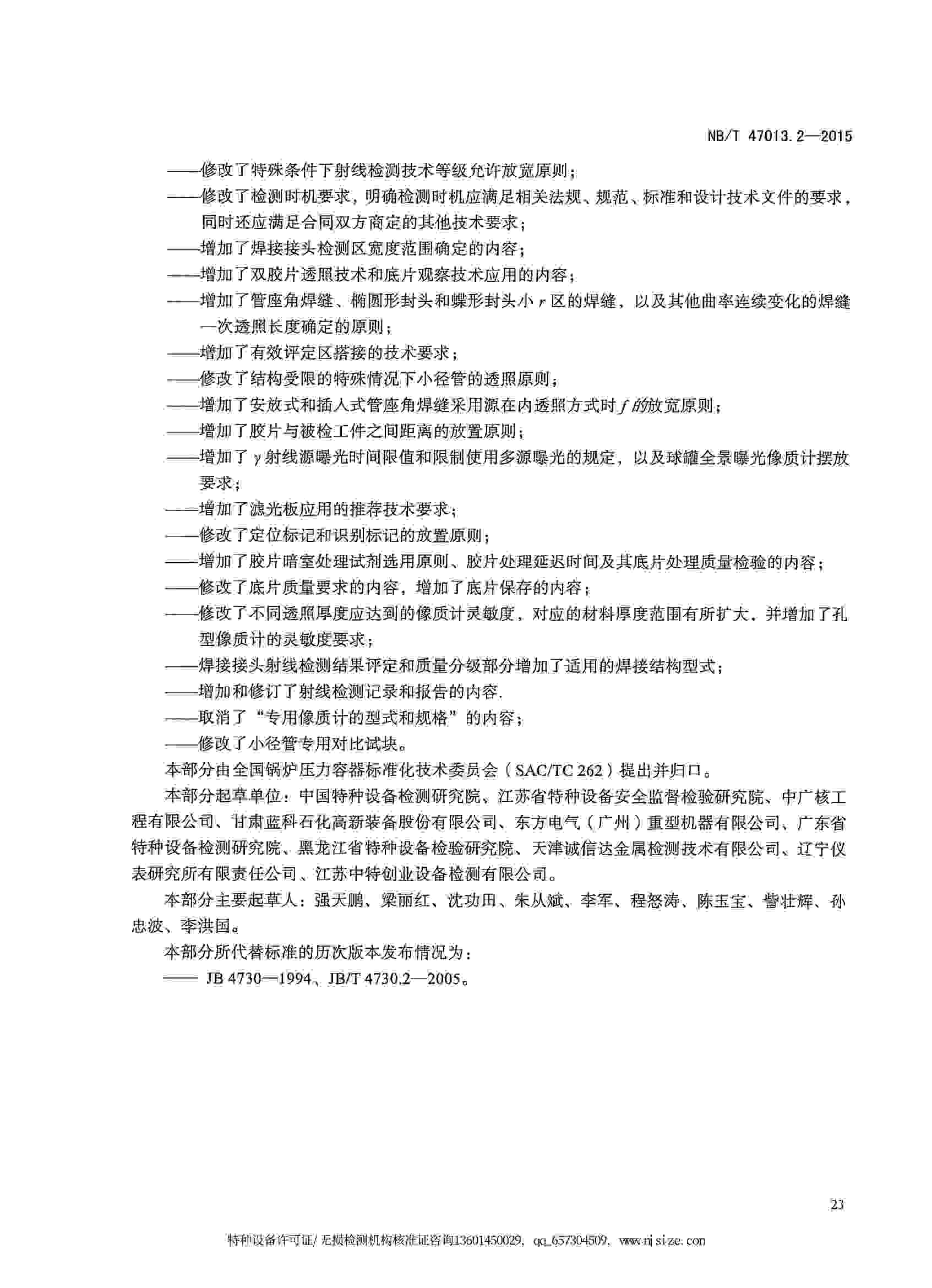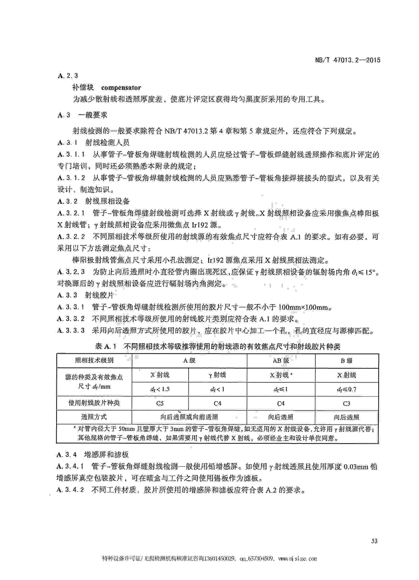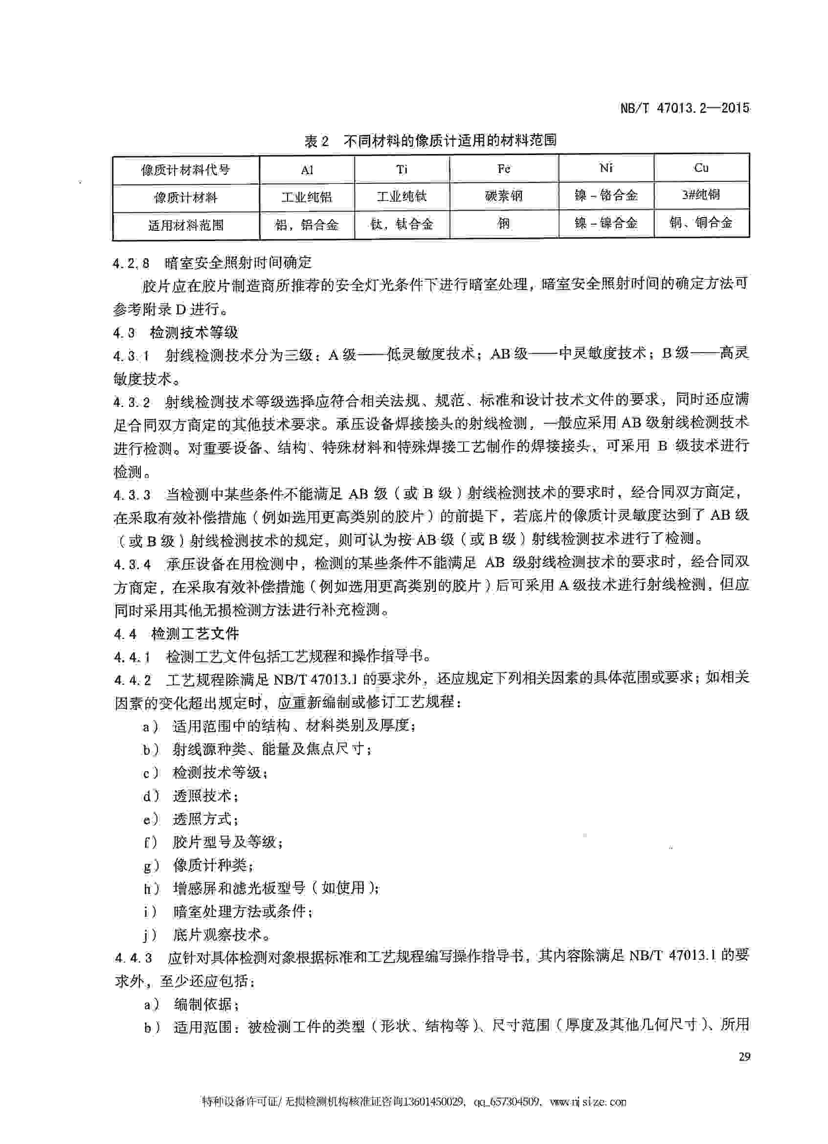 NB/T47013-2015 承壓設備無損檢測 第2部分:射線檢測
