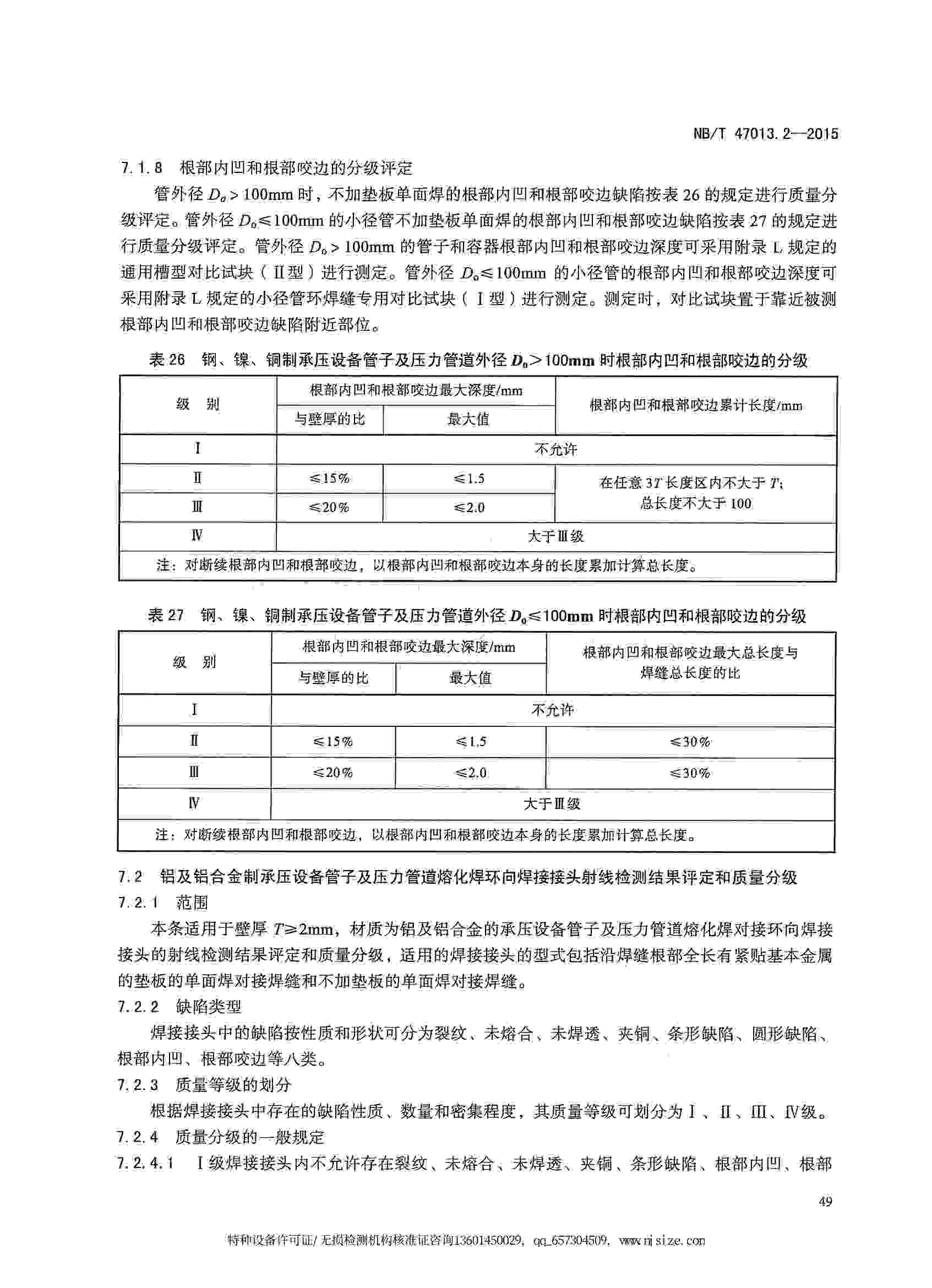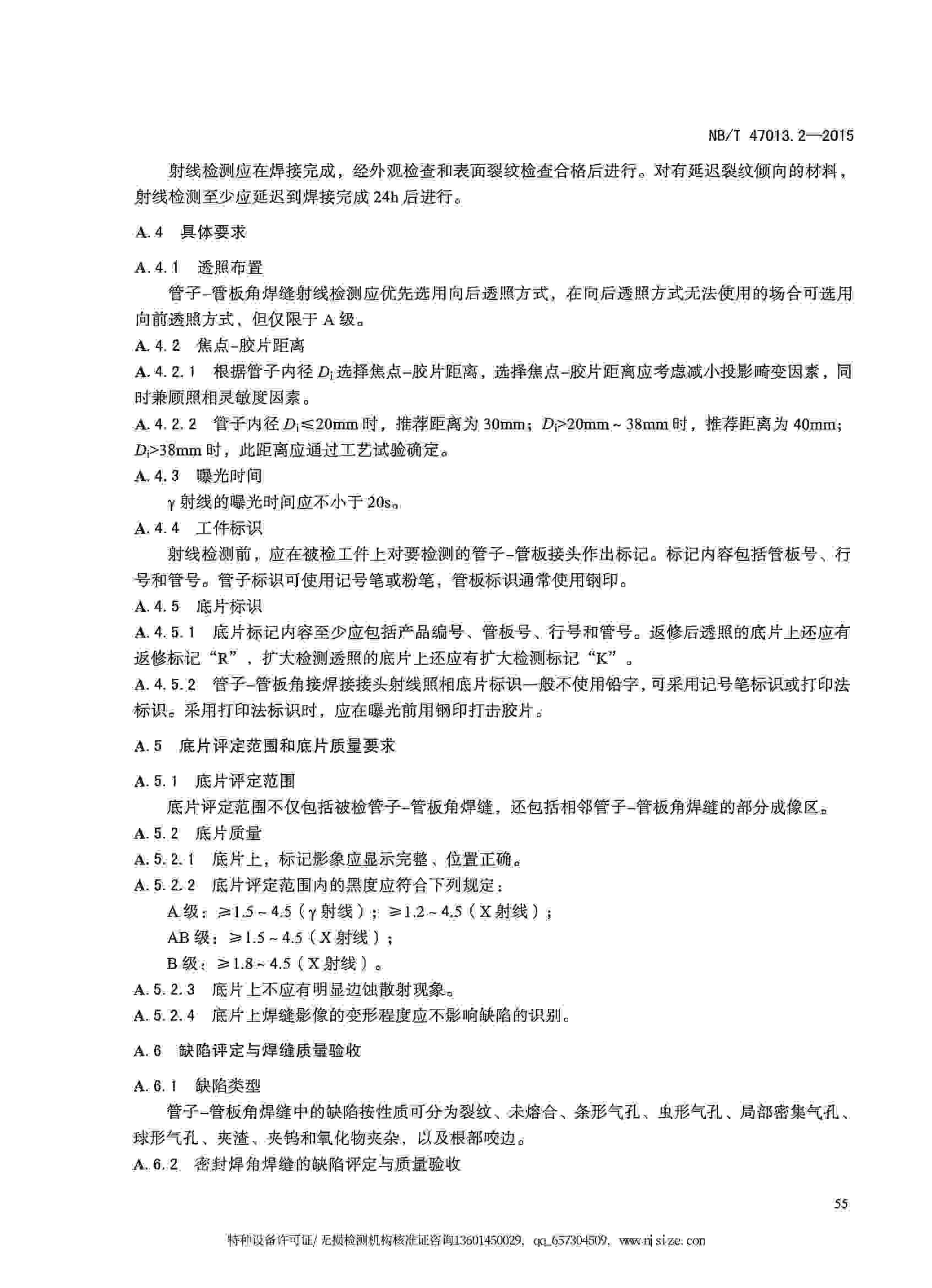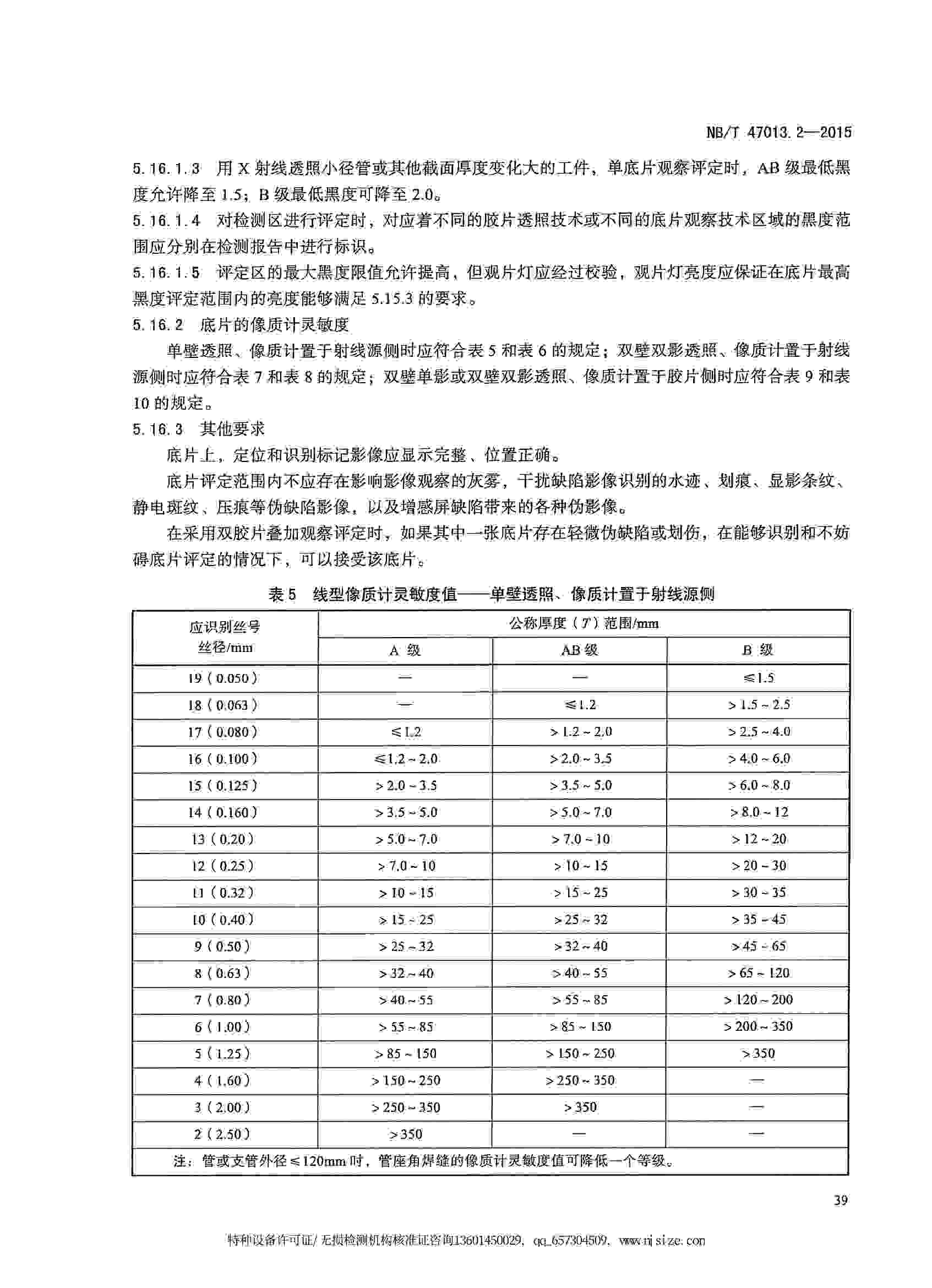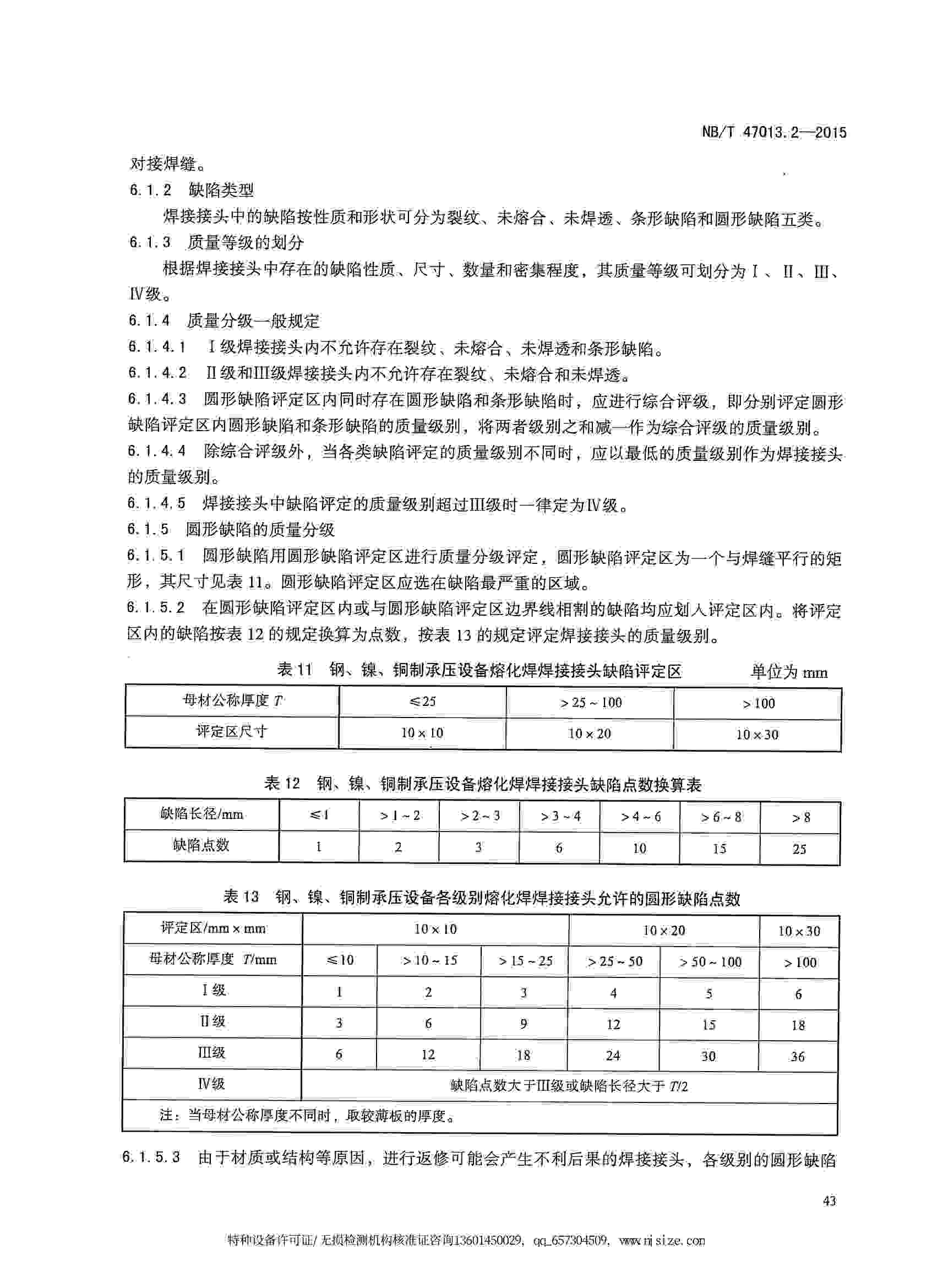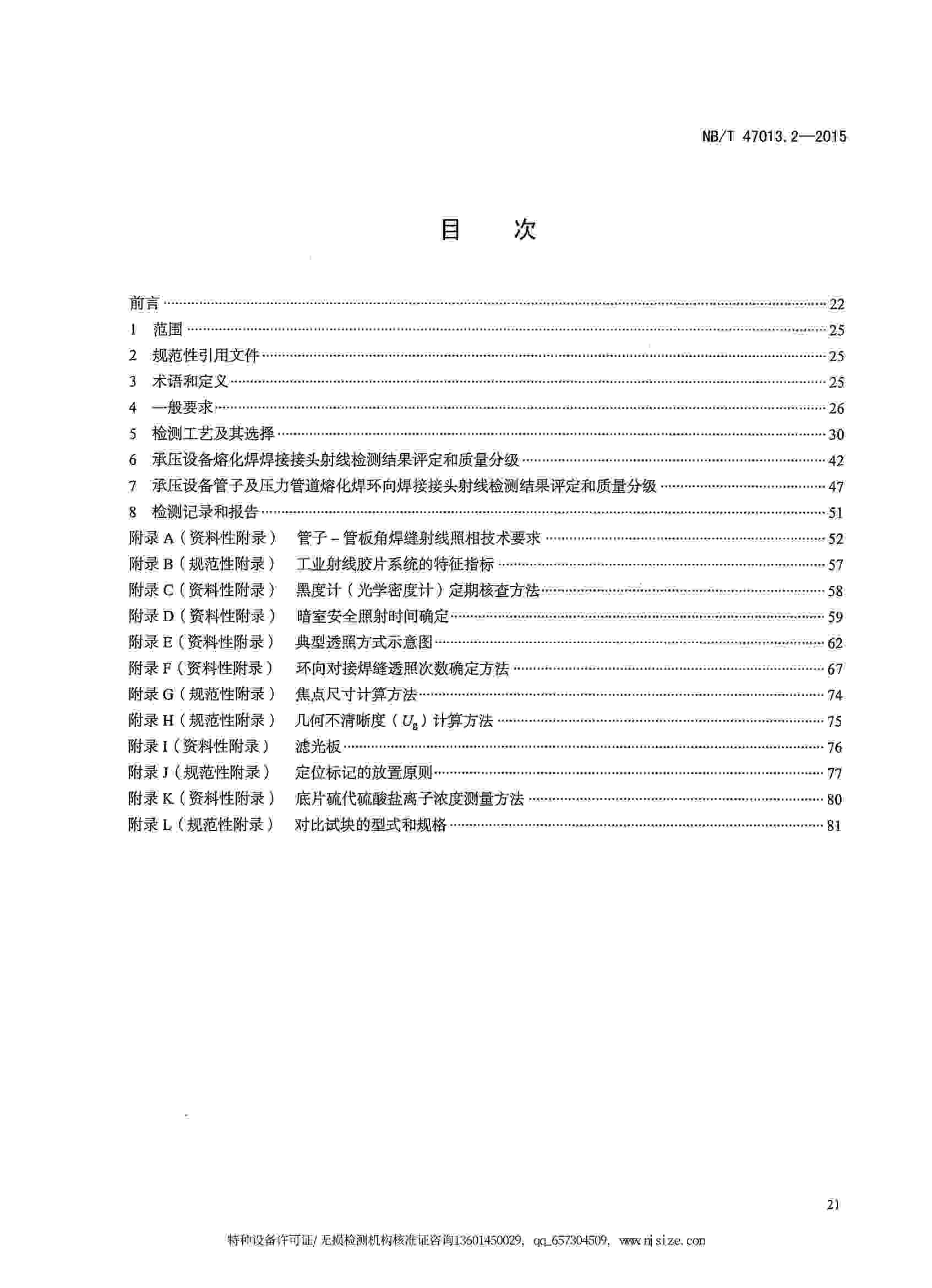 NB/T47013-2015 承壓設備無損檢測 第2部分:射線檢測