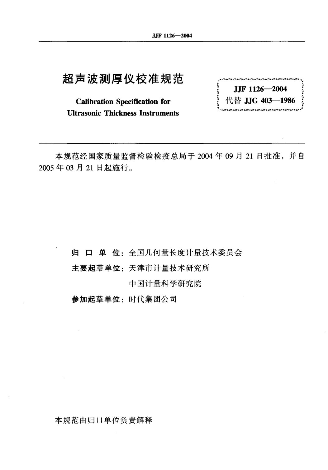 JJF1126-2004超聲波測厚儀校準規(guī)范