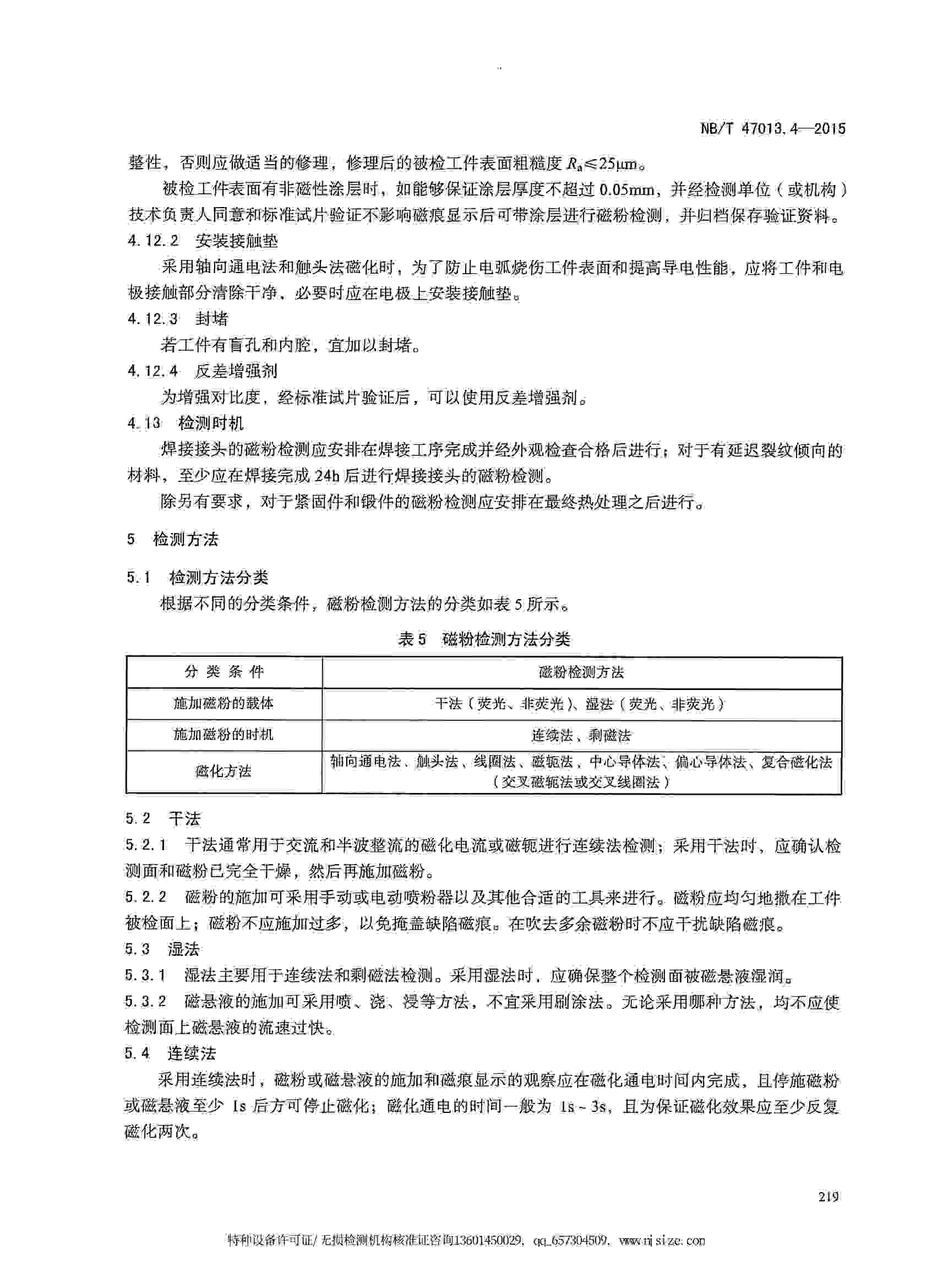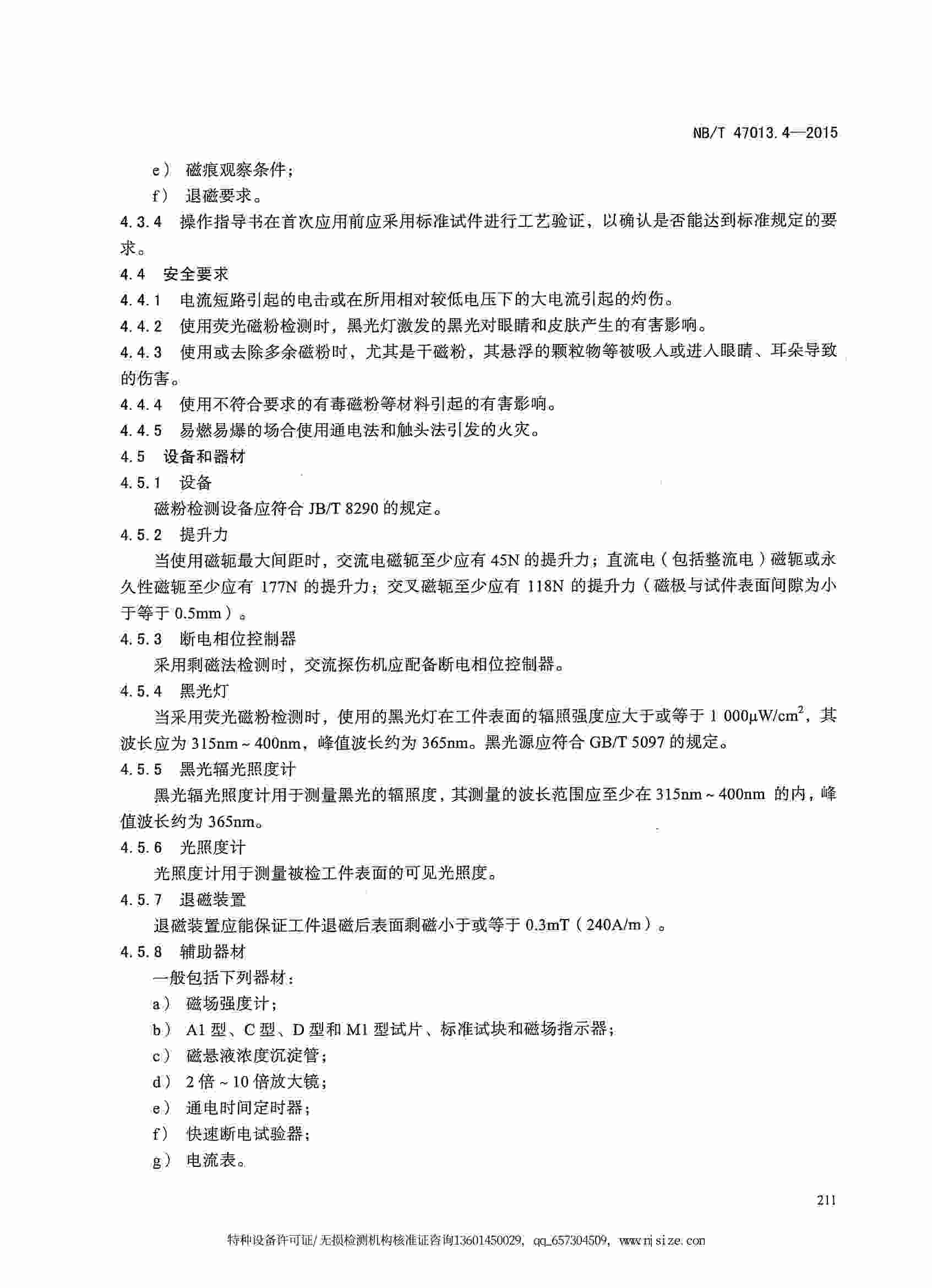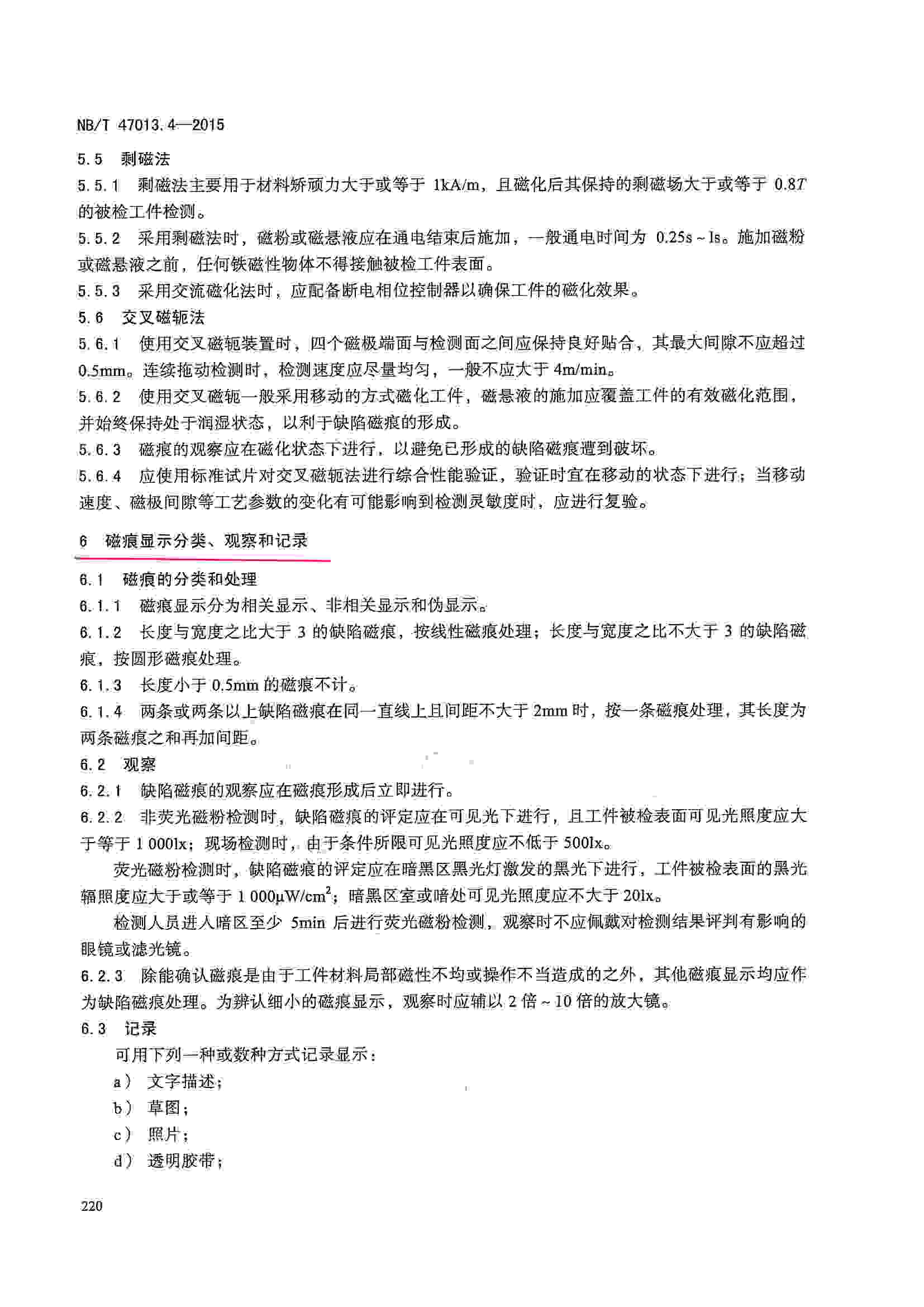 NB/T47013.4-2015 承壓設(shè)備無損檢測 第4部分:磁粉檢測