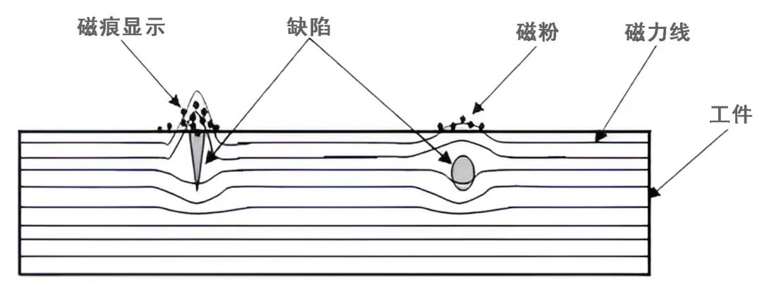 磁粉探傷主要是對被檢測材料內(nèi)部施加磁場使其磁化,然后在工件表面撒上磁粉觀察磁粉分布變化進而達到對材料缺陷分析判斷的方法。用于檢測鐵磁性工件表面或近表面間隙極窄的裂紋和目視難以看出的缺陷。