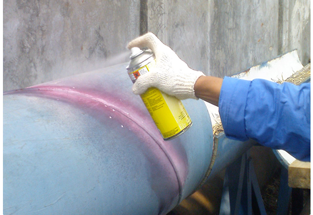 檢測時無需大型的設(shè)備,可不用水、電。對無水源、電源、或高空作業(yè)的現(xiàn)場,使用攜帶式噴灌著色滲透探傷劑十分方便。形狀復(fù)雜的部件也可用滲透檢測,并一次操作就可大致做到全面檢測。工件幾何形狀對磁粉探傷影響較大,但對滲透探傷的影響很小。對因結(jié)構(gòu)、形狀、尺寸不利于實施磁化的工件,可考慮用滲透探傷代替磁粉探傷。