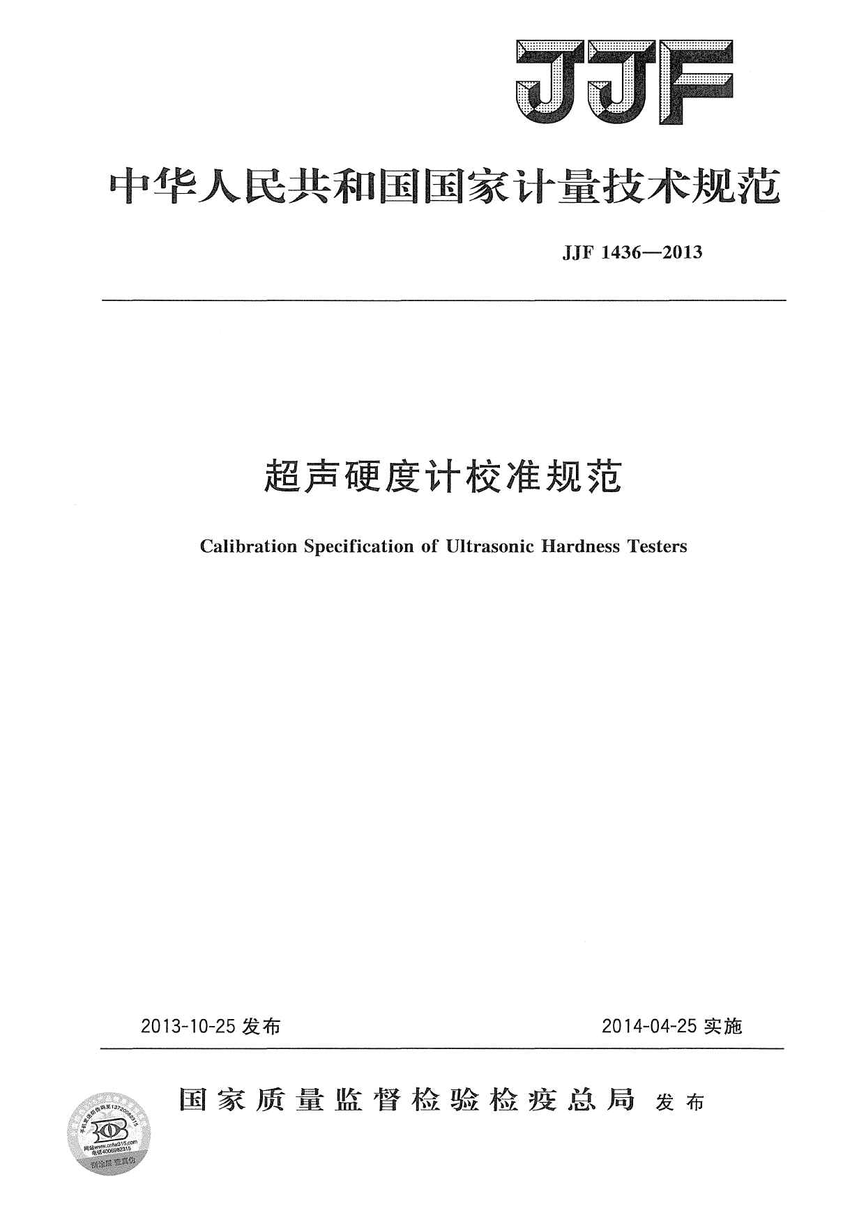 JJF 1436-2013 超聲硬度計(jì)校準(zhǔn)規(guī)范