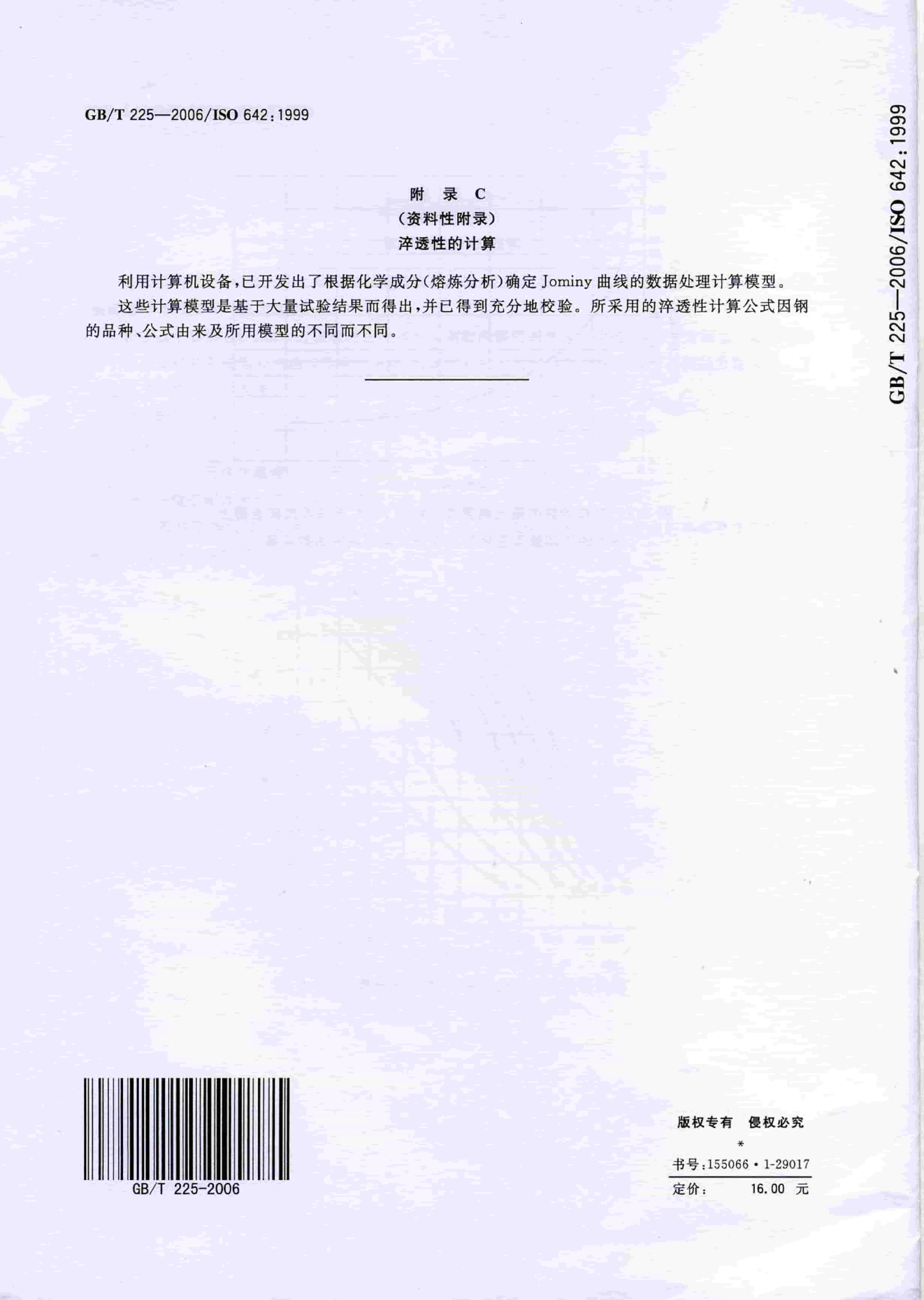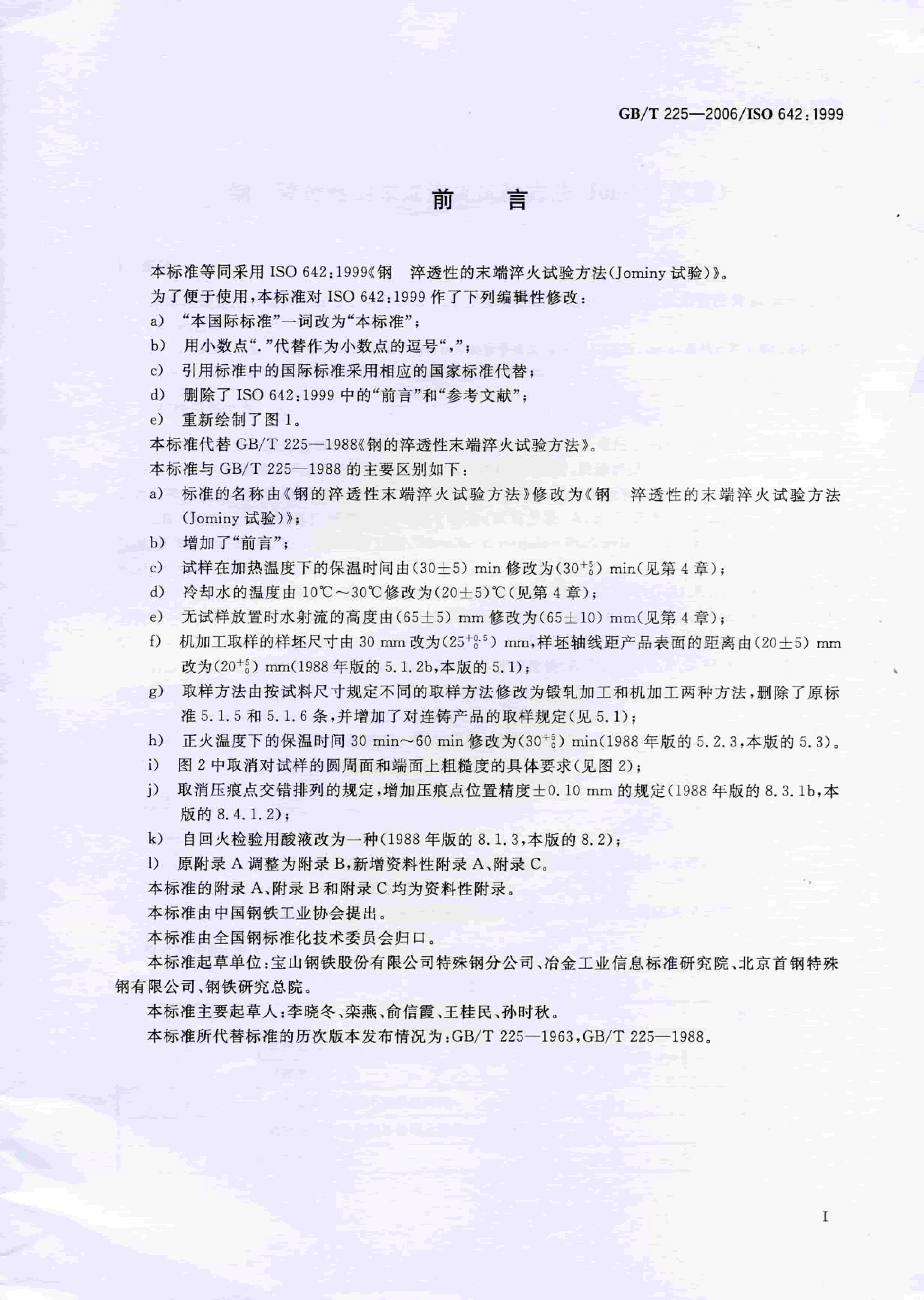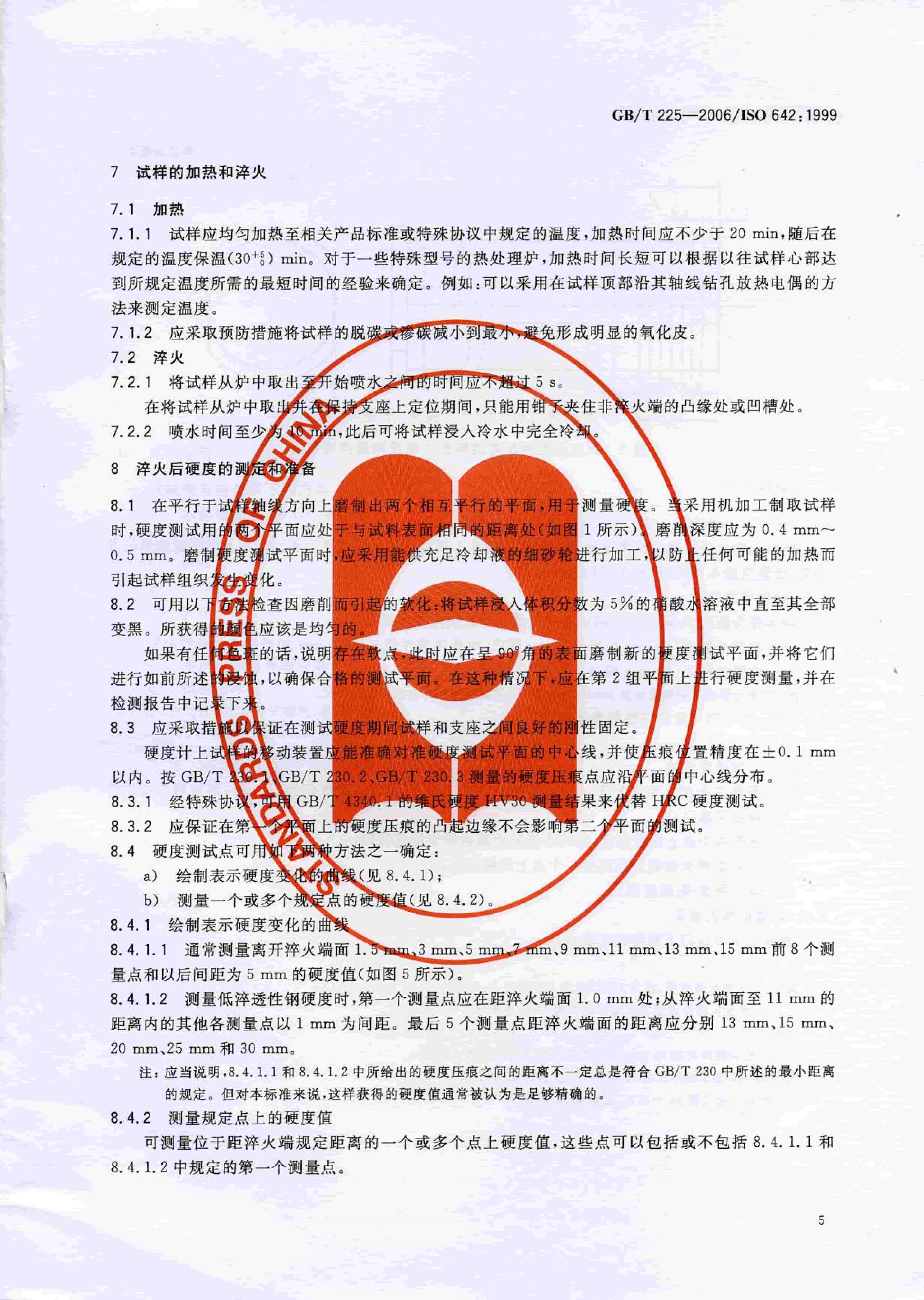 GBT 225-2006 鋼 淬透性的末端淬火試驗方法(Jominy 試驗)